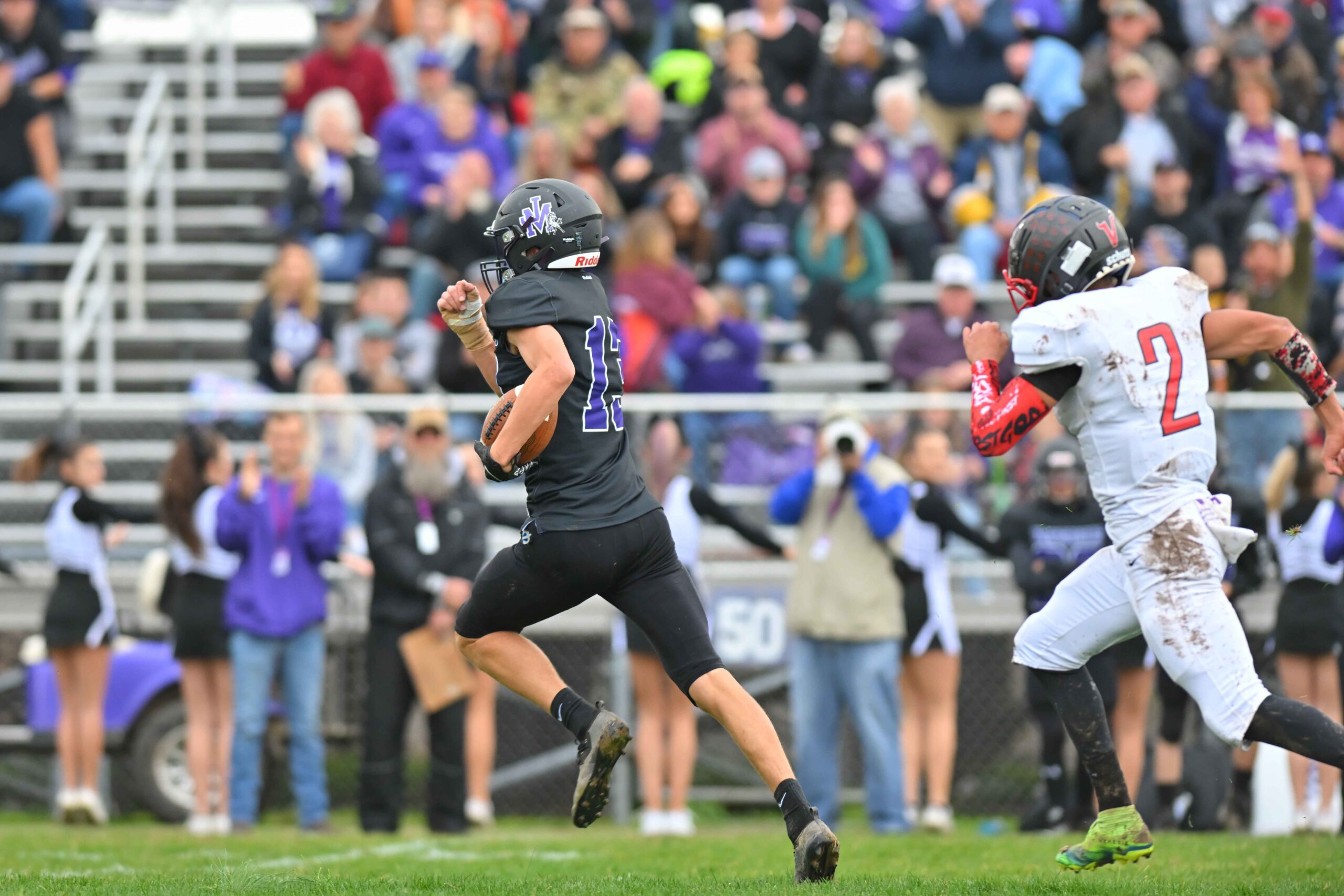The Vikings grabbed the momentum out of the half, marching 80 yards in eight plays for their first score of the game and forced the Mavericks to turn the ball over on downs at the Petersburg 8 on the following drive. Unfortunately for the visitors, the Mavericks stopped the bleeding immediately with a safety from Hayden Parker and a 49-yard rushing score from Ridgeway on the next play from scrimmage to make it a 37-7 game. The Vikings never threatened the rest of the way.
