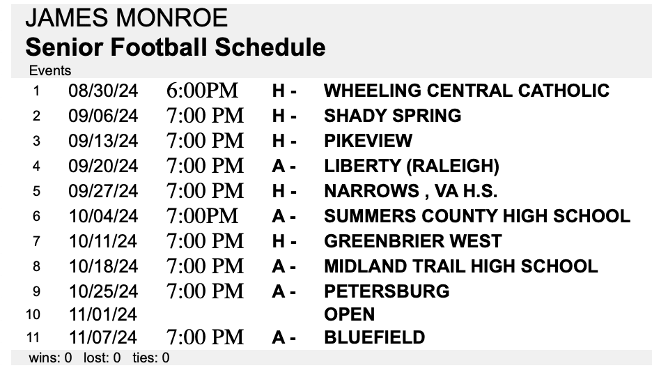 James Monroe will open its season Friday against Class AA contender Wheeling Central.