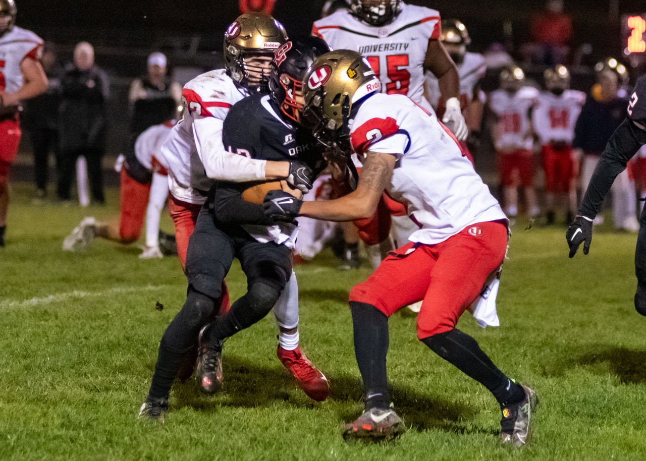 Trailing 21-14 at the break, Oak Hill hit University with a scoring drive of just over seven minutes to pull within one point.