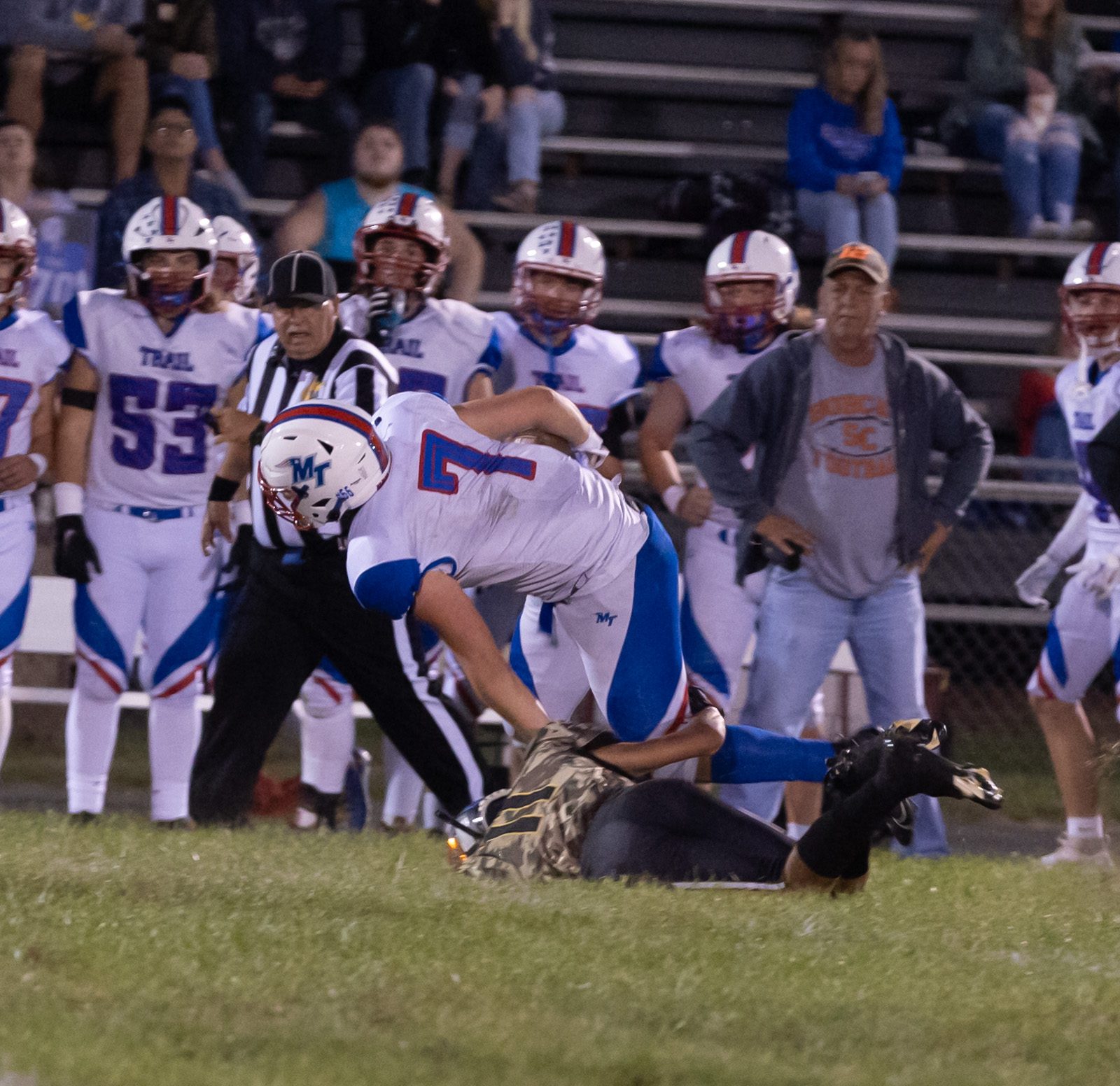 Although it was still within striking distance, Trail could make the crucial plays and was left stymied by a fumble and a pair of interceptions in the final quarter.