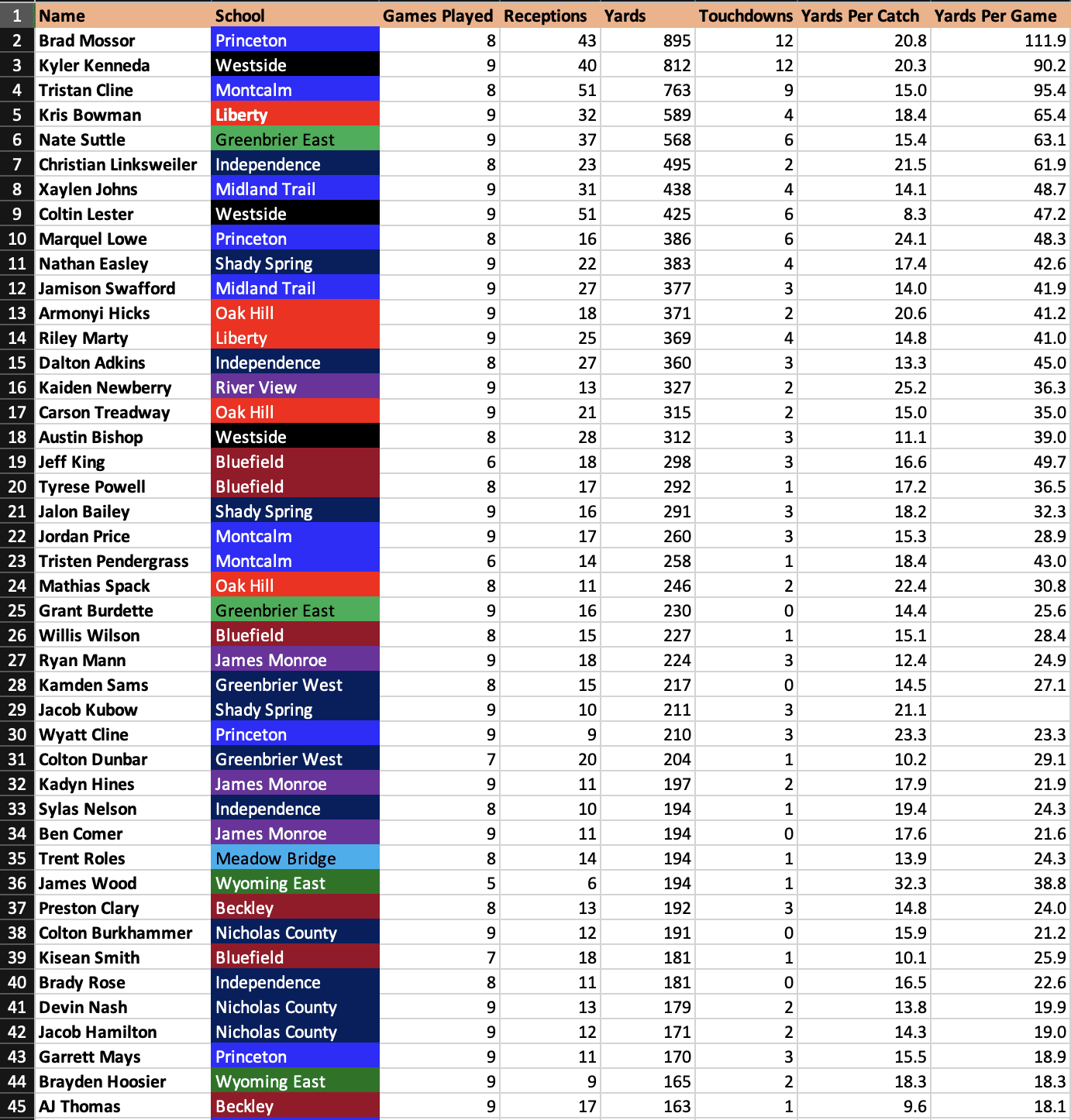 Greenbrier West and Richwood did not report statistics for Week 10.