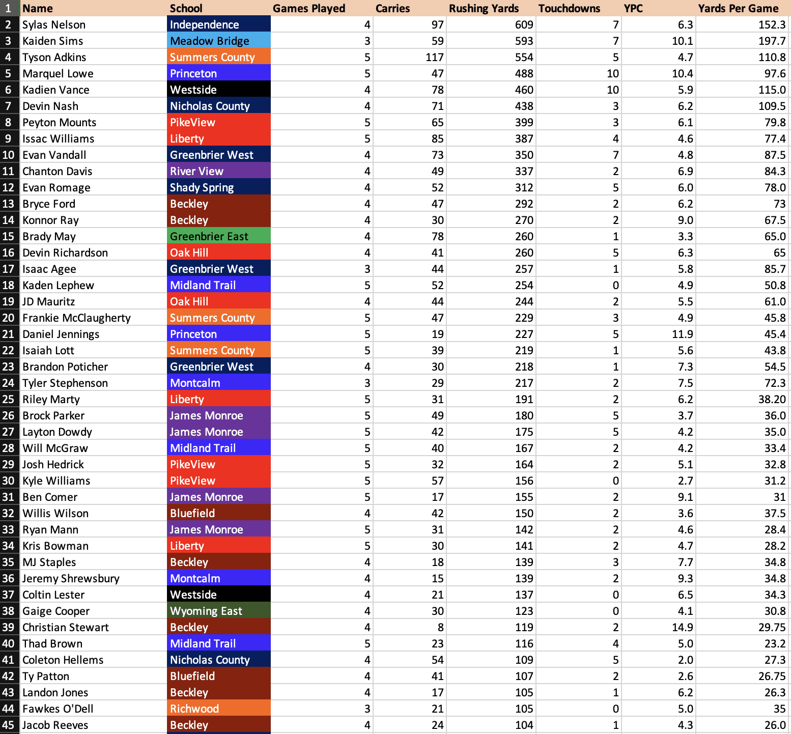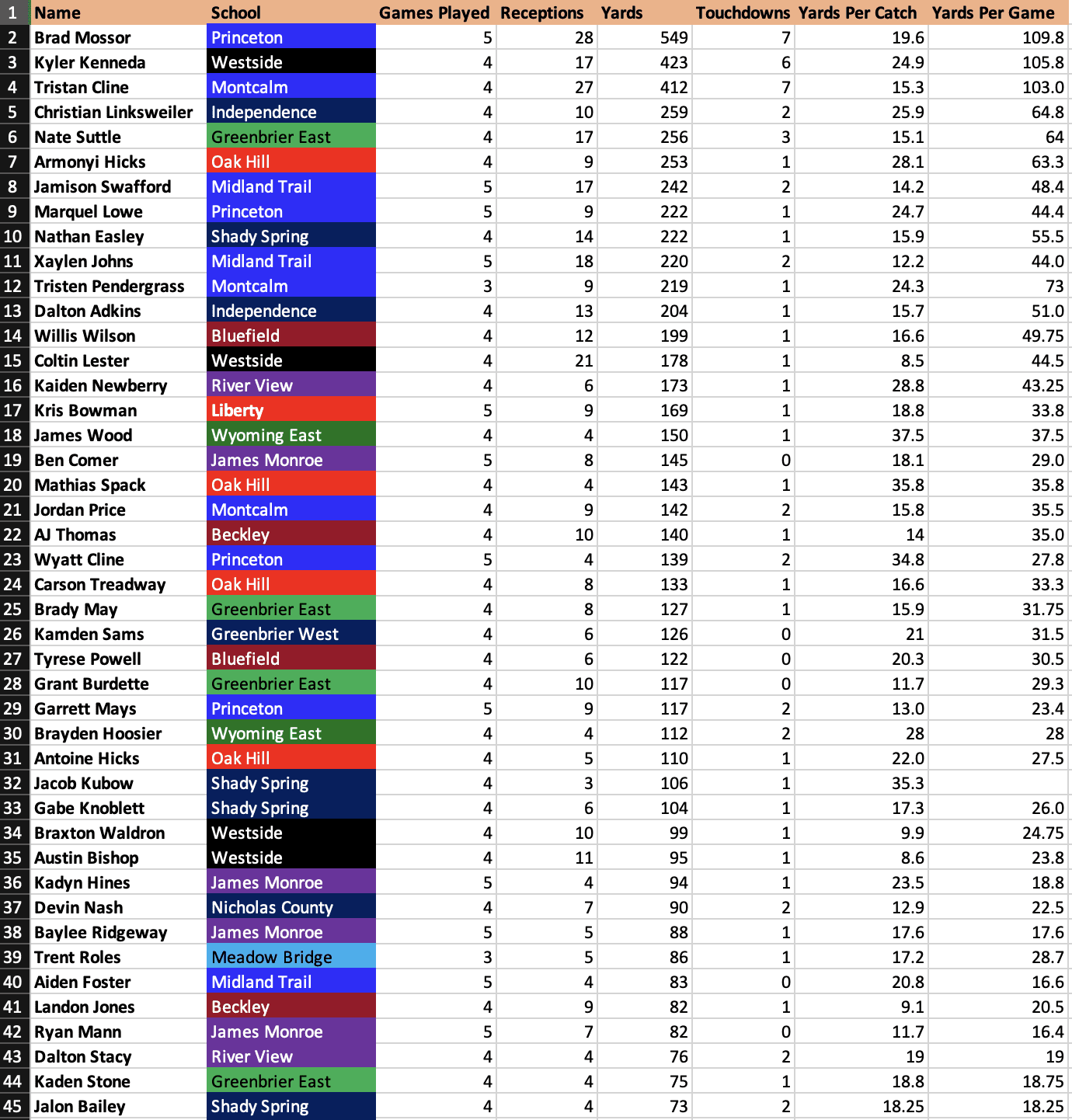 Richwood did not submit statistics from Week 5.