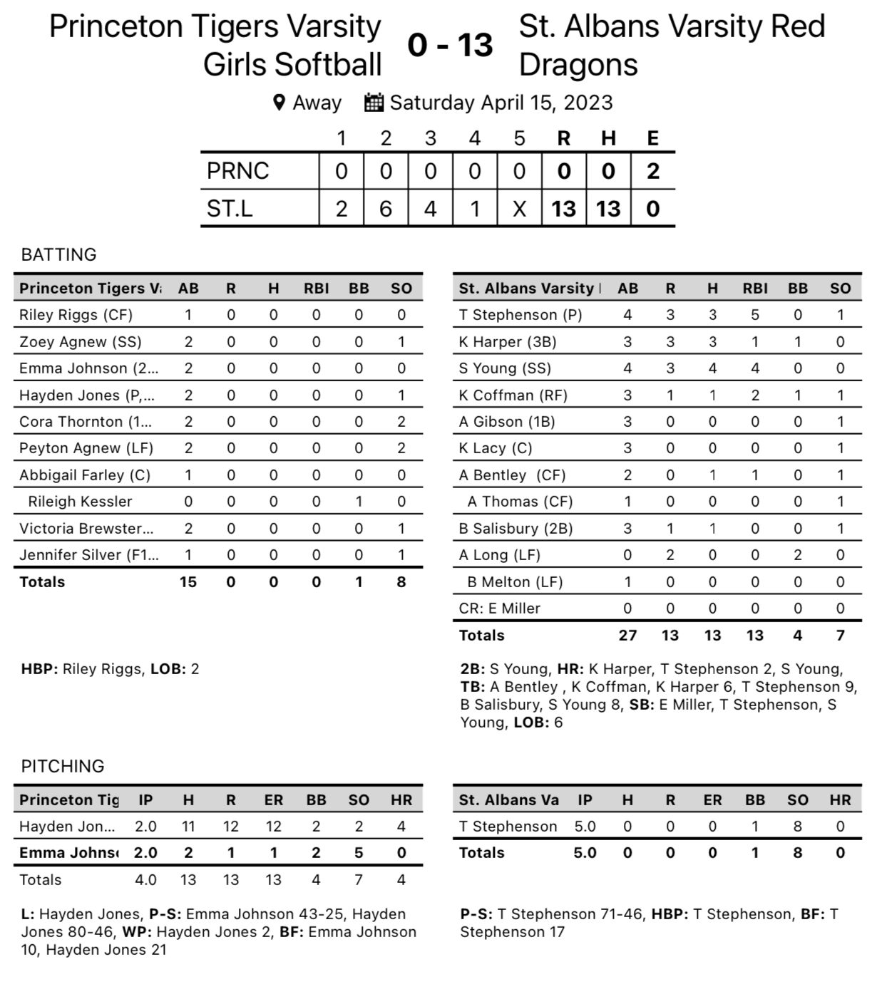St. Albans – Tayven Stephenson pitched a five-inning no-hitter Saturday as St. Albans earned a 13-0 win over Princeton.