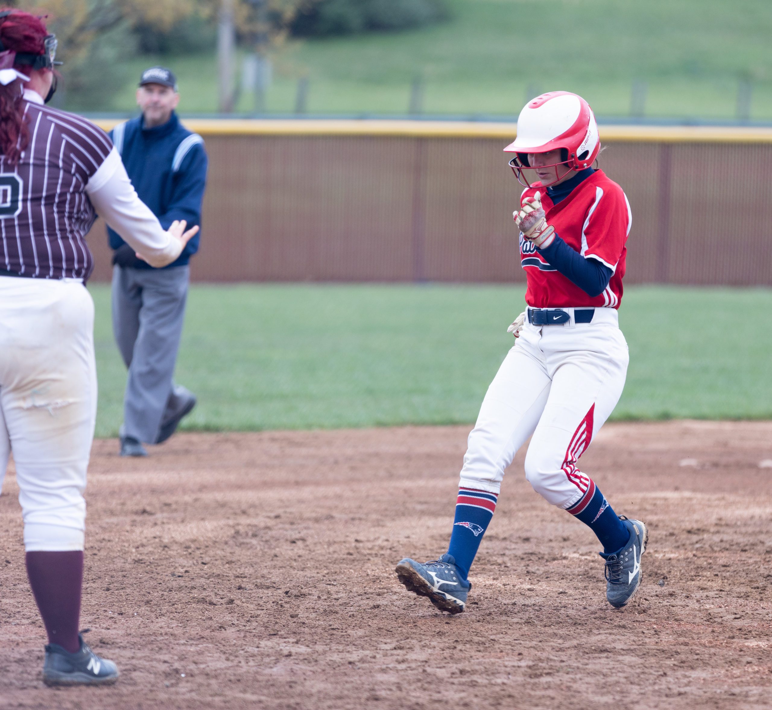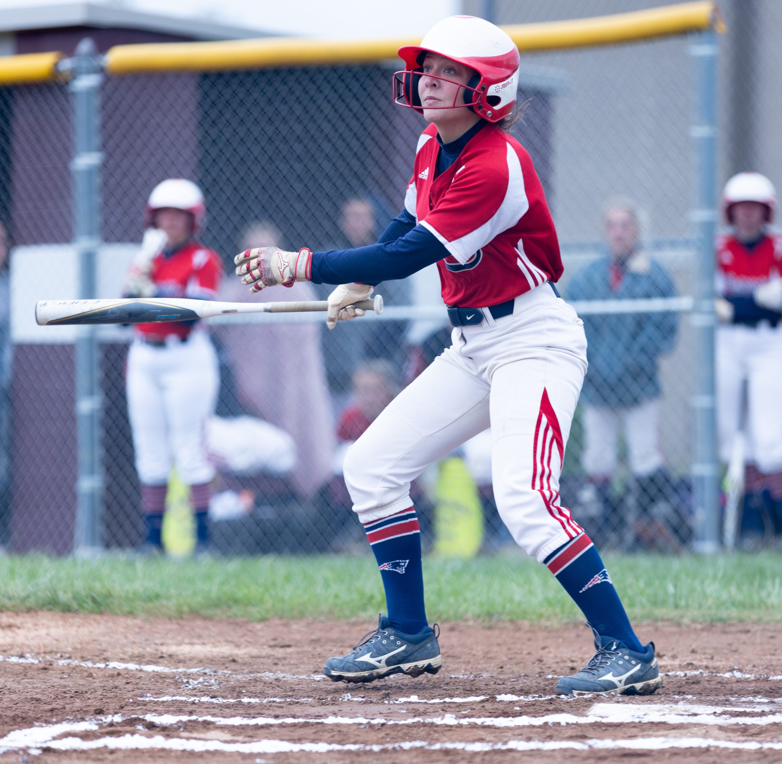 “They tell us to never look at the ball. When I am passing first, I am looking at (third base coach) Tony (Maiolo) the whole way. If he is swinging his arms, I am kicking it,” Mullins said, smiling. “Me and Kayla (hitting) at three and four (in the lineup) really helps because she is that big power hitter. If I can get on, she is always getting me in.”