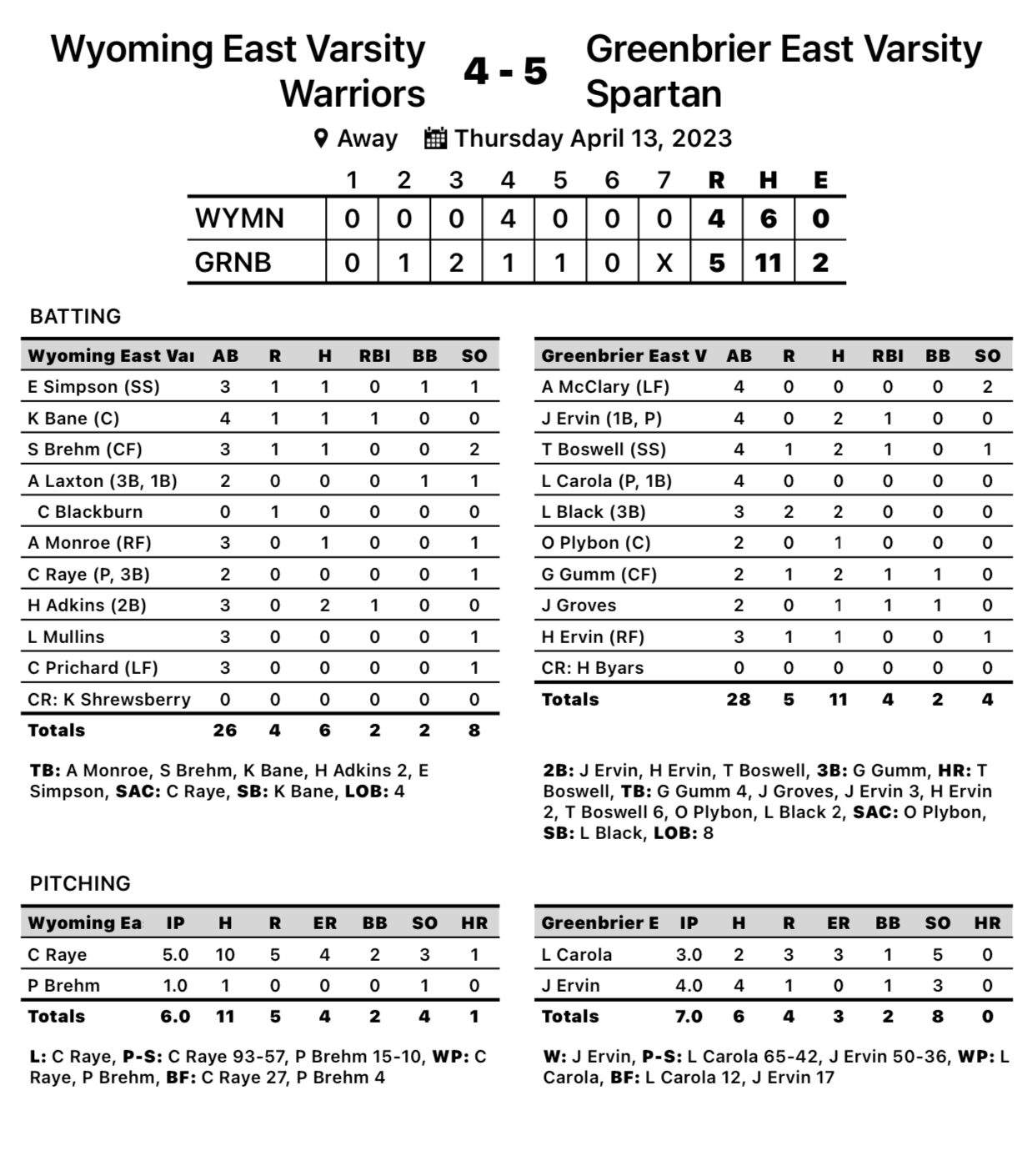 Fairlea – Wyoming East couldn’t gain traction on offense Thursday, falling 5-4 at Greenbrier East.