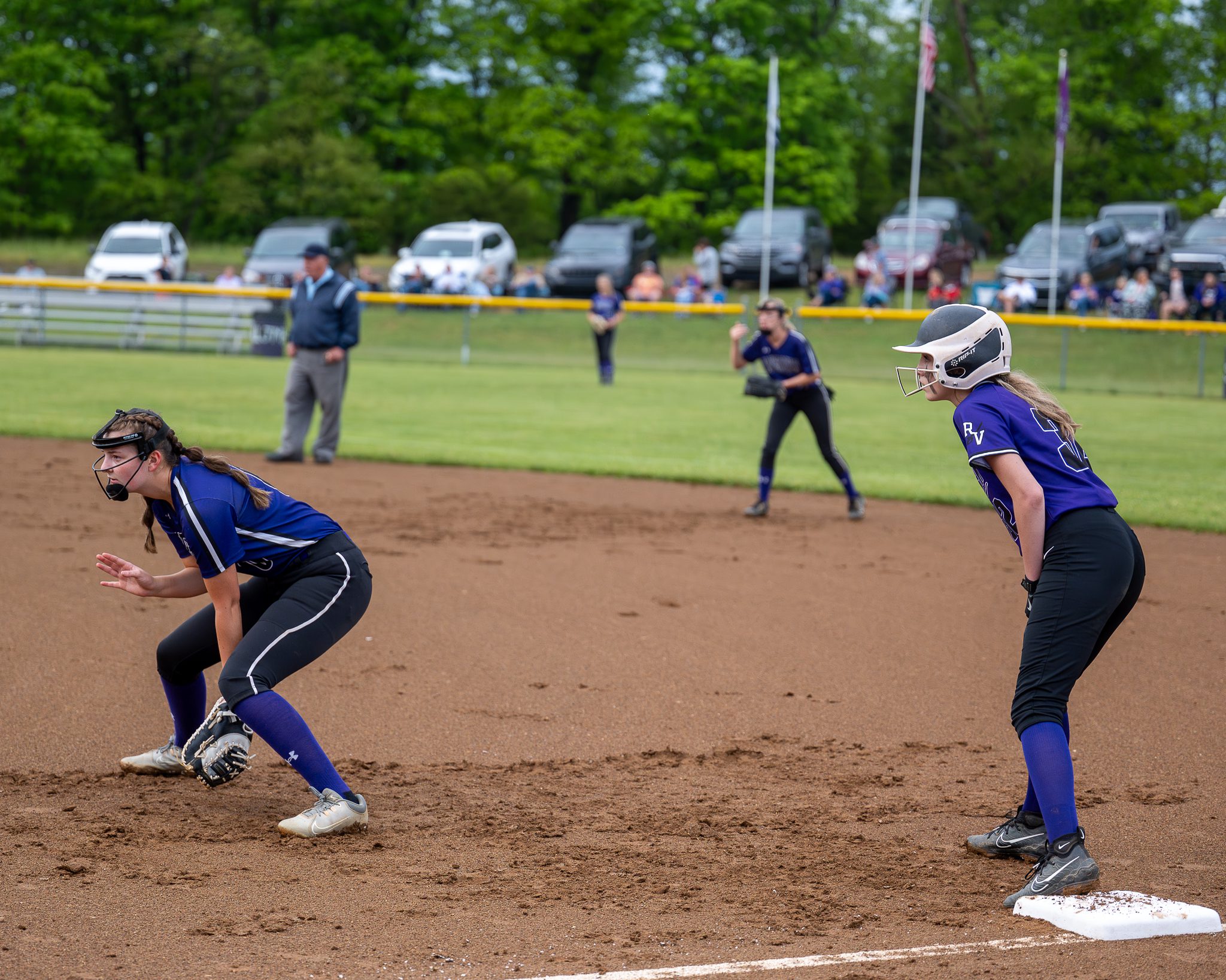 Grayson Dowdy was hit by a pitch out of the leadoff spot and bunt attempts from Shailyn Wickline and Chloe Bert stuck in the damp infield dirt, resulting in a pair of singles to load the bases. Thomas aided her own cause with a two-run double before Evey Hart collected the third bunt-single that scored another run.