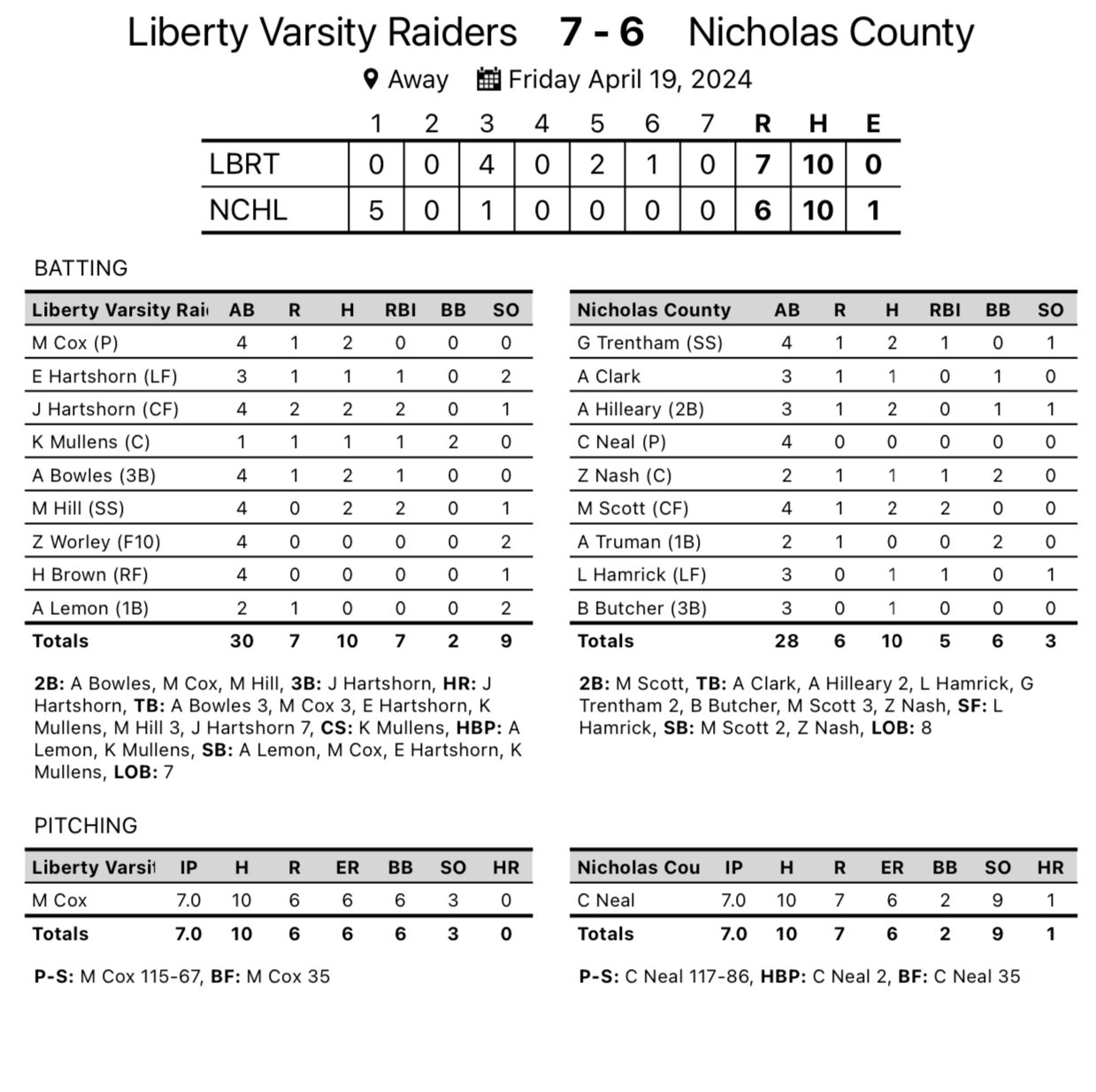 Liberty 7, Nicholas County 6