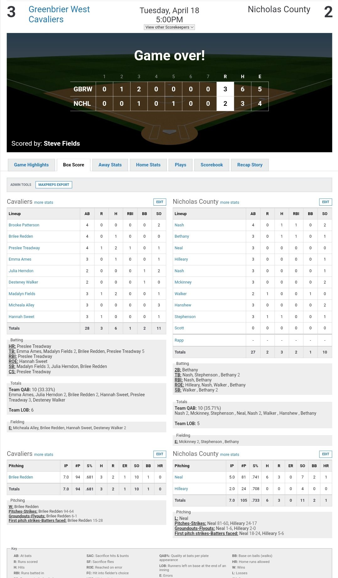 Greenbrier West 3, Nicholas County 2