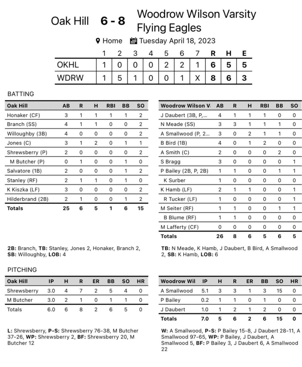 Beckley 8, Oak Hill 6