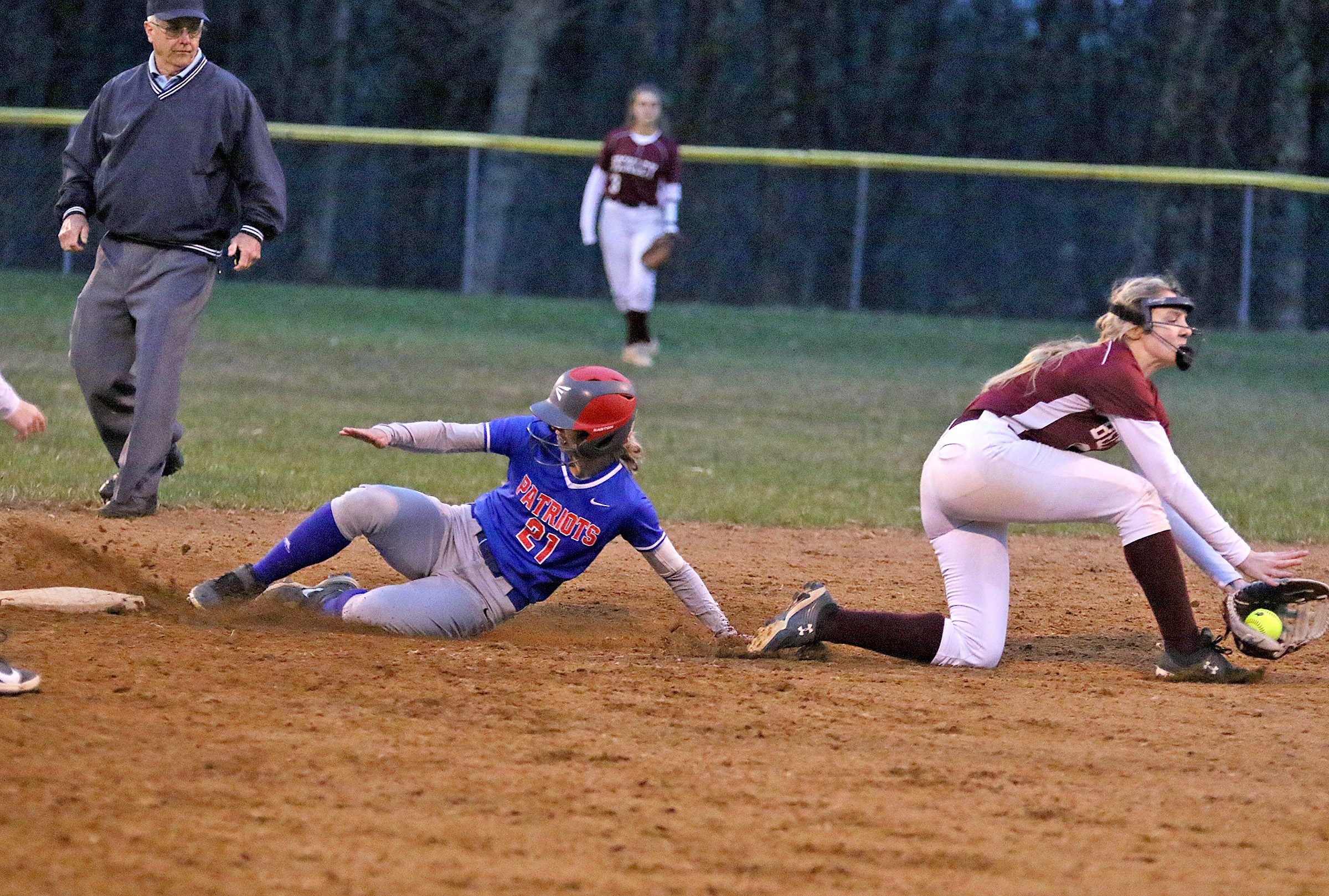 The first Patriot to put the ball in play was Chezney Skaggs, but her bunt turned into a liner back to Smallwood.