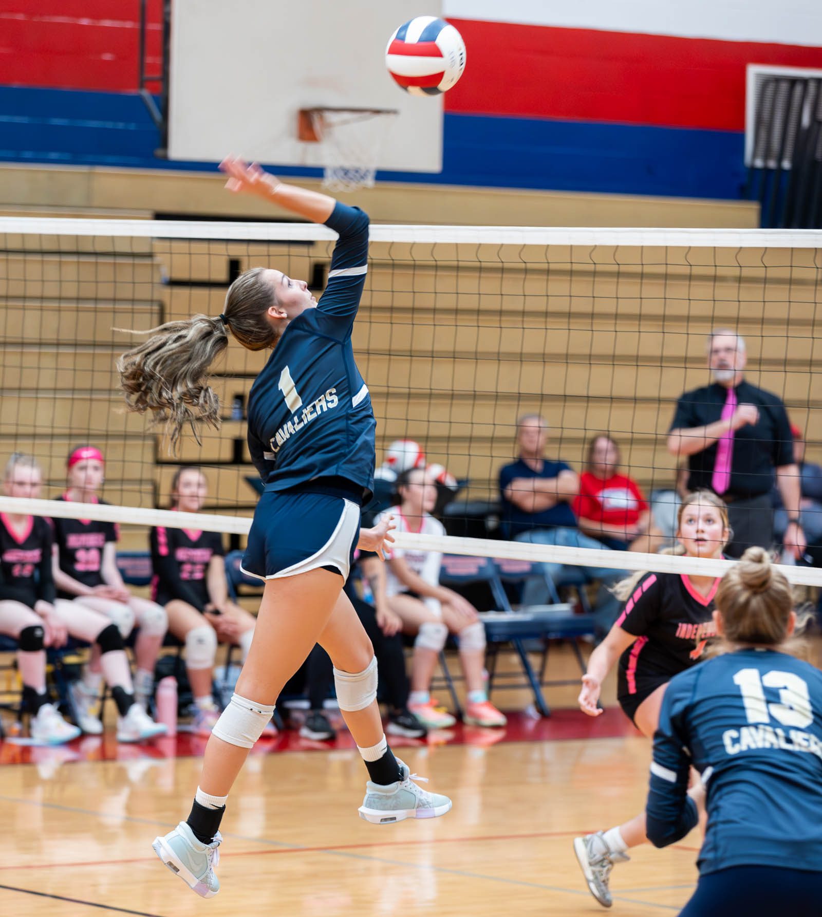 Facing at a 16-10 deficit, Graci Perry gave the Patriots a boost with a huge block at the net. An attacking error by the Cavs was followed by an ace from Kayleigh Wilhite and a nice winner down the line from Makensie Denny. When senior standout and WVU Tech commit Aubree Cantrell registered a kill, Independence had rallied for a 17-16 lead.