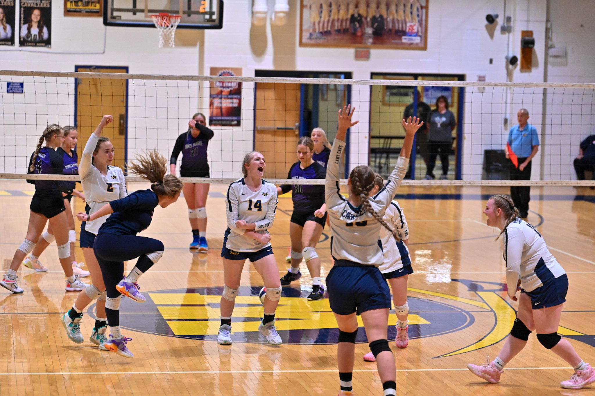 Running down an errant ball, Preslee Treadway went crashing into her teammates on the bench, allowing West to get the ball back across the net. The junior all-stater then secured the point with a kill on the next possession which sent her teammates into a joyous frenzy.