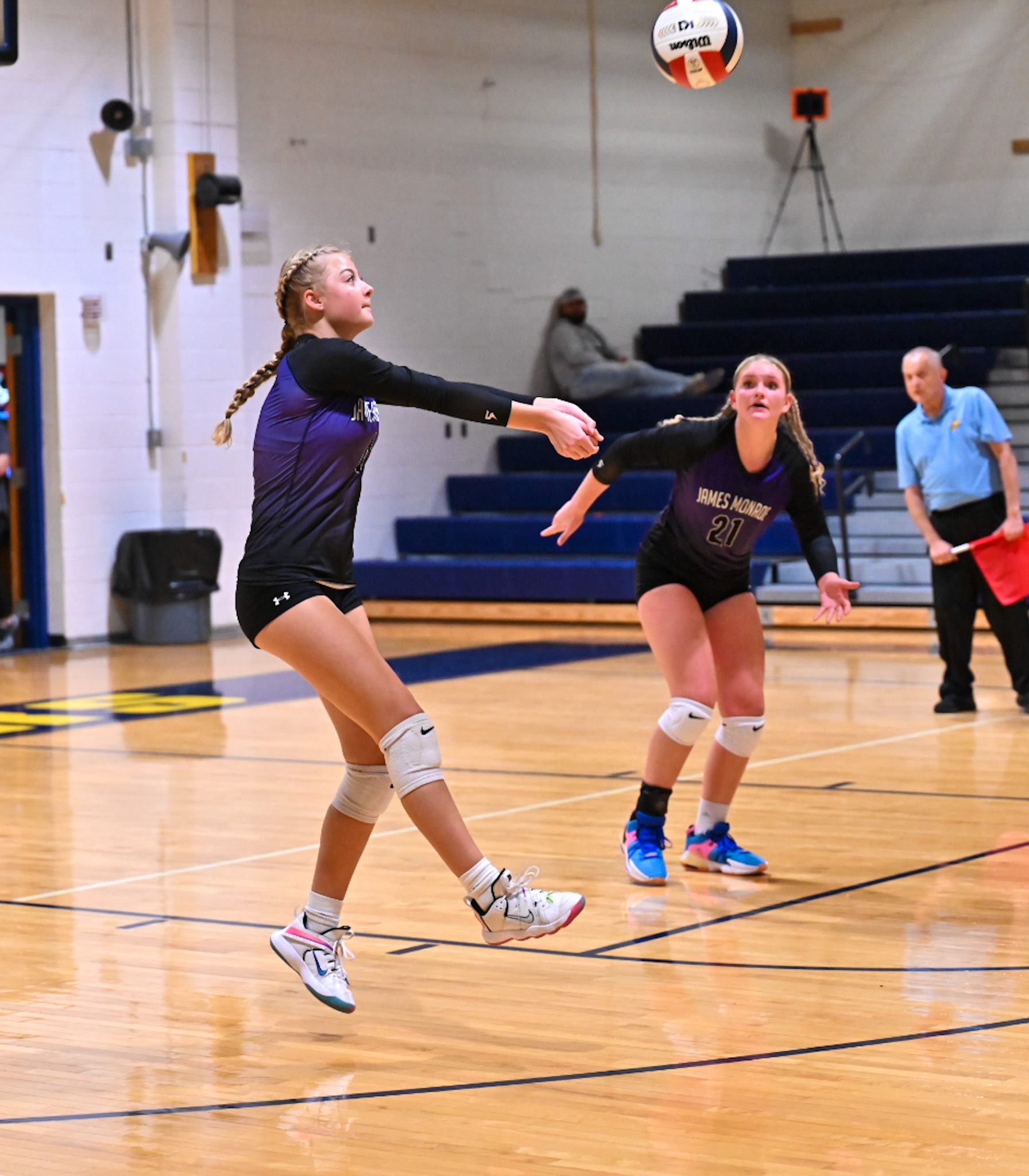 Trailing 17-15, James Monroe tied the set with kills from Ava Dunlap and Sadie Mann. A block from Dunlap gave the visitors its first lead of the set, but it was short lived.