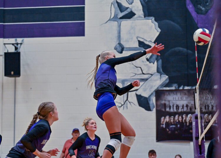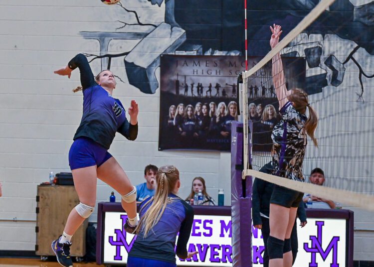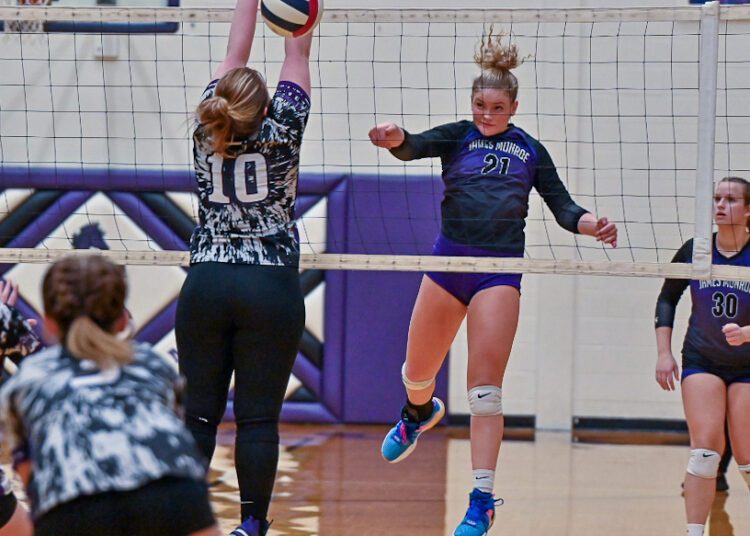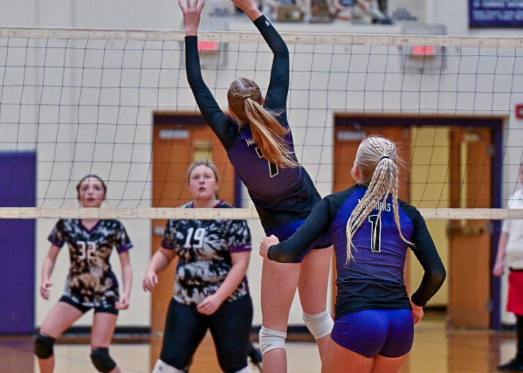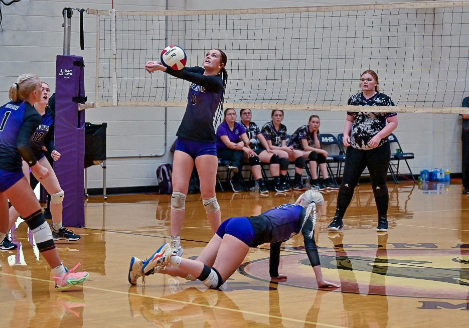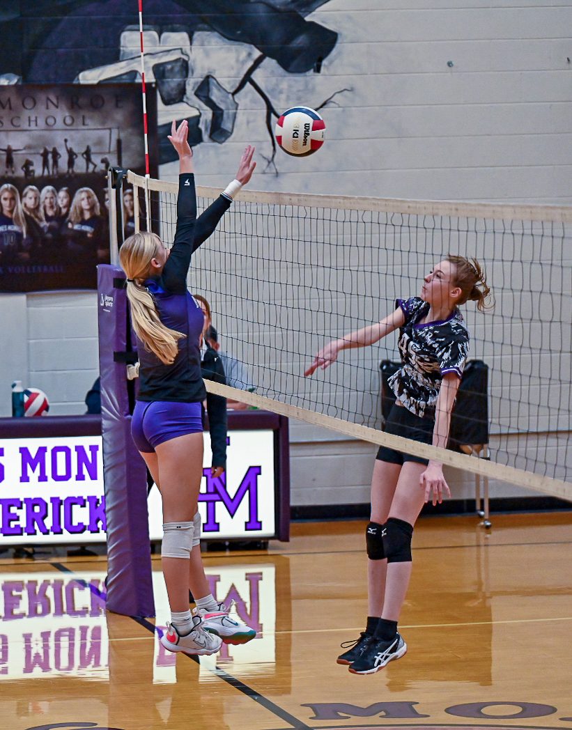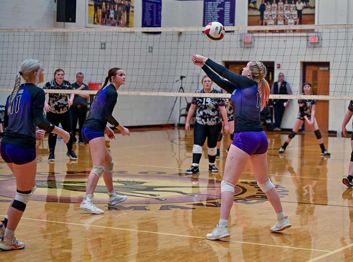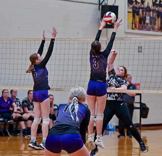 “They just love to hit,” Bradley said. “I’ve got a picture here of Aliyah hitting and there’s an indent in the ball. I mean that girl can pound it and when they get focused and in their zone they’re going to hit as hard as they can. We work a lot on just placing the ball and getting a full approach and using your arms and swinging and they just practice it every day and work hard. They led the team last year in kills and Ava’s in there this year with them. They’re just having fun with it.”