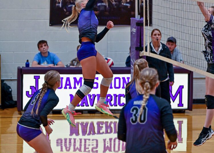 River View, which defeated Montcalm earlier in the evening to earn its spot in the title tilt, trailed early with the Mavericks racing to an 18-9 lead behind empathic kills from Maggie Boroski, Aliyah Clarkson and Ava Pitzer.
