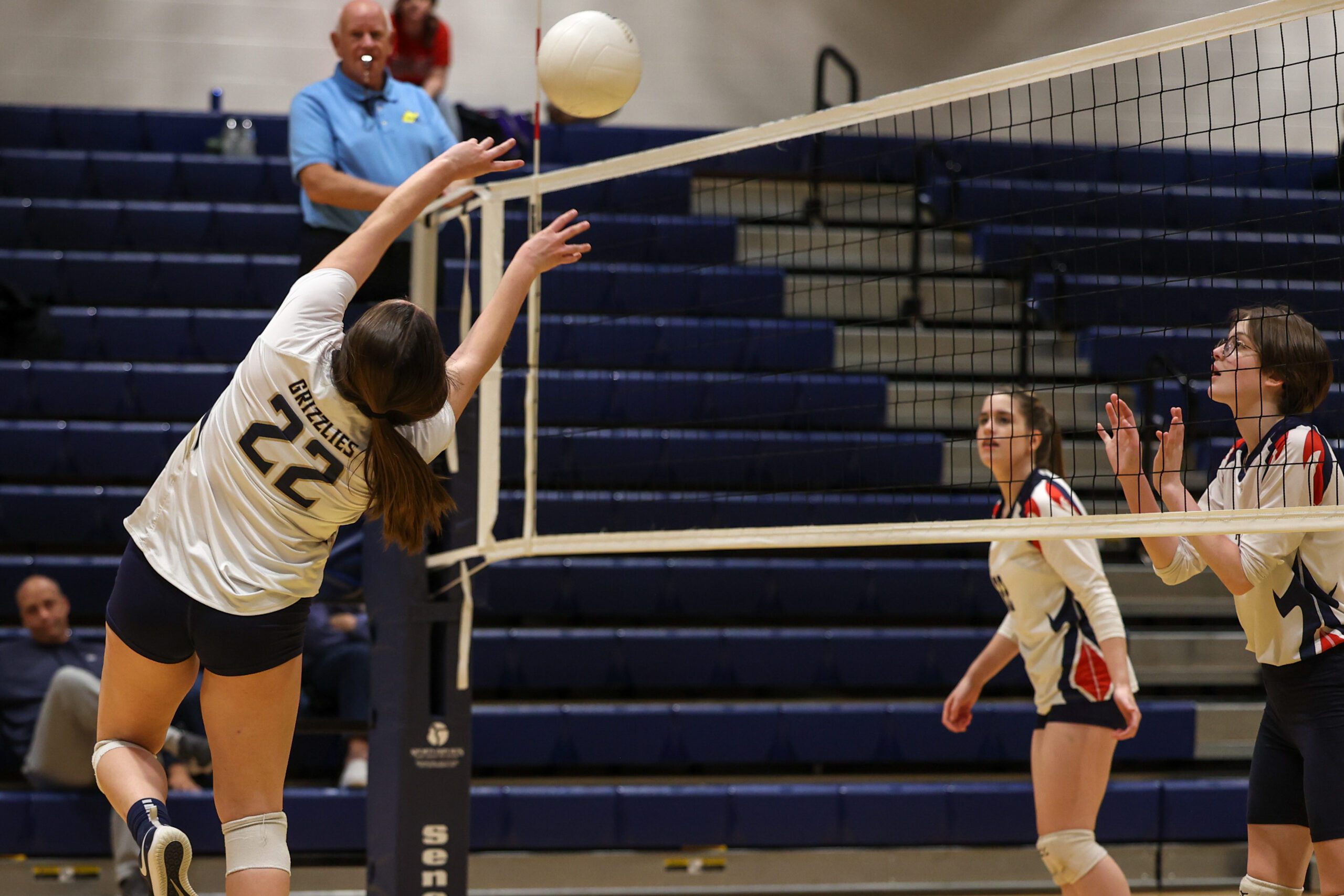 A 7-1 run gave the Grizzlies its first lead of the night, but Nicholas could not hold the lead and dropped the second set 25-22.