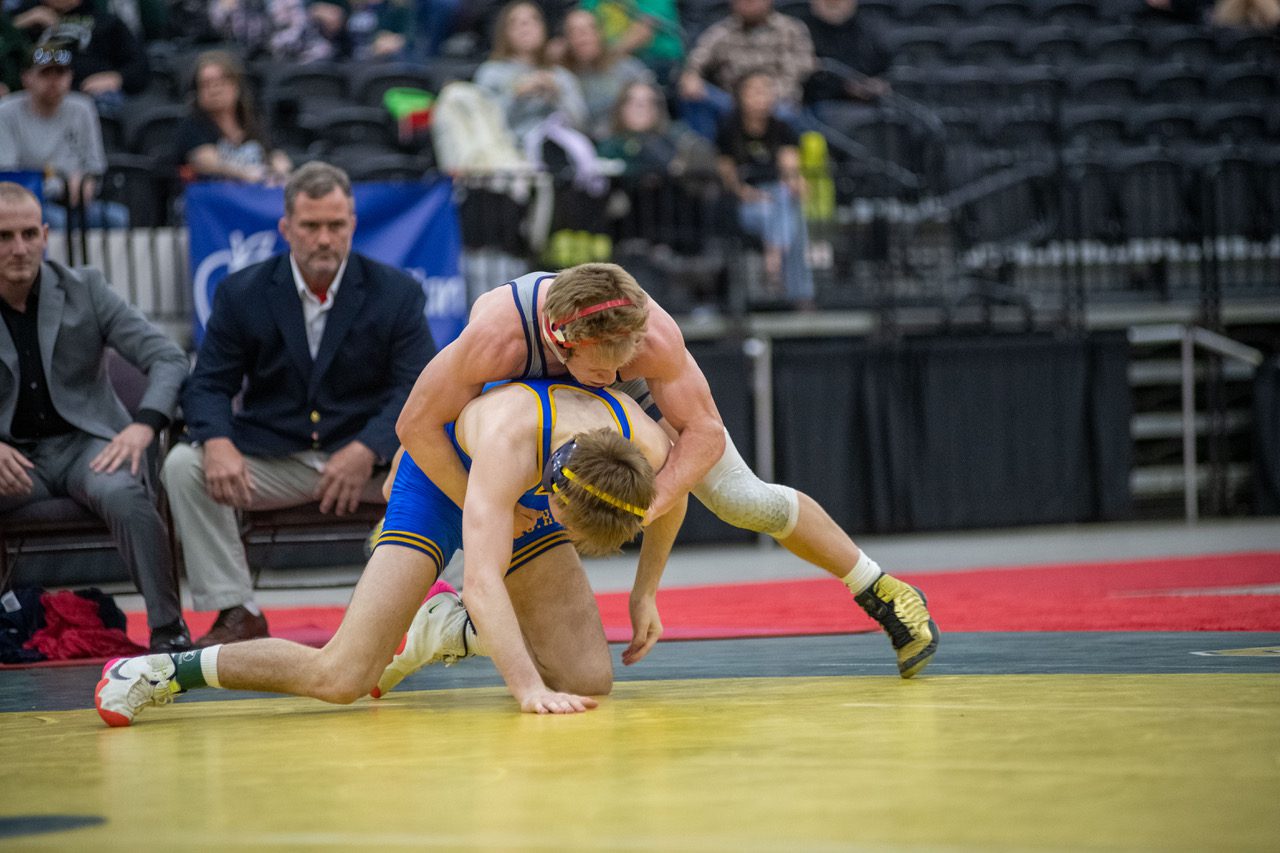 Following Adams was senior Colten Caron who battled Cameron senior Adam Angel. The contest was a rematch of last year’s final where Caron won the sate title in overtime.