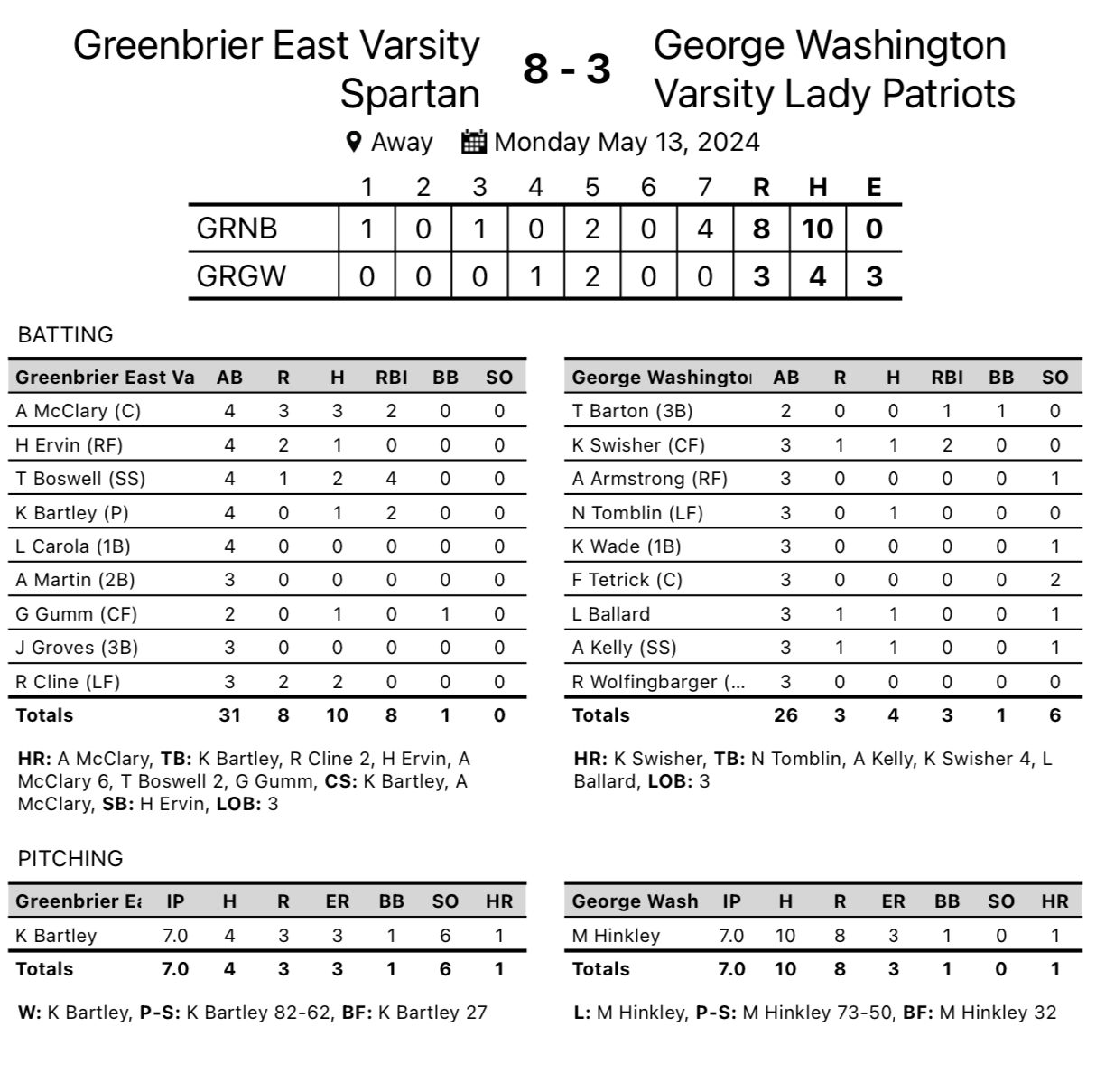 Greenbrier East 8, George Washington 3