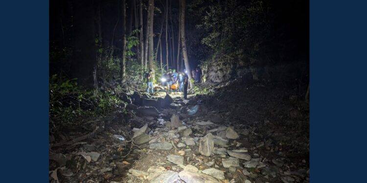 SUMMERS COUNTY, WV (LOOTPRESS) – A man was rescued and airlifted to a hospital Tuesday night after suffering a medical emergency in a remote area of Summers County, according to the Summers County Volunteer Fire Department.