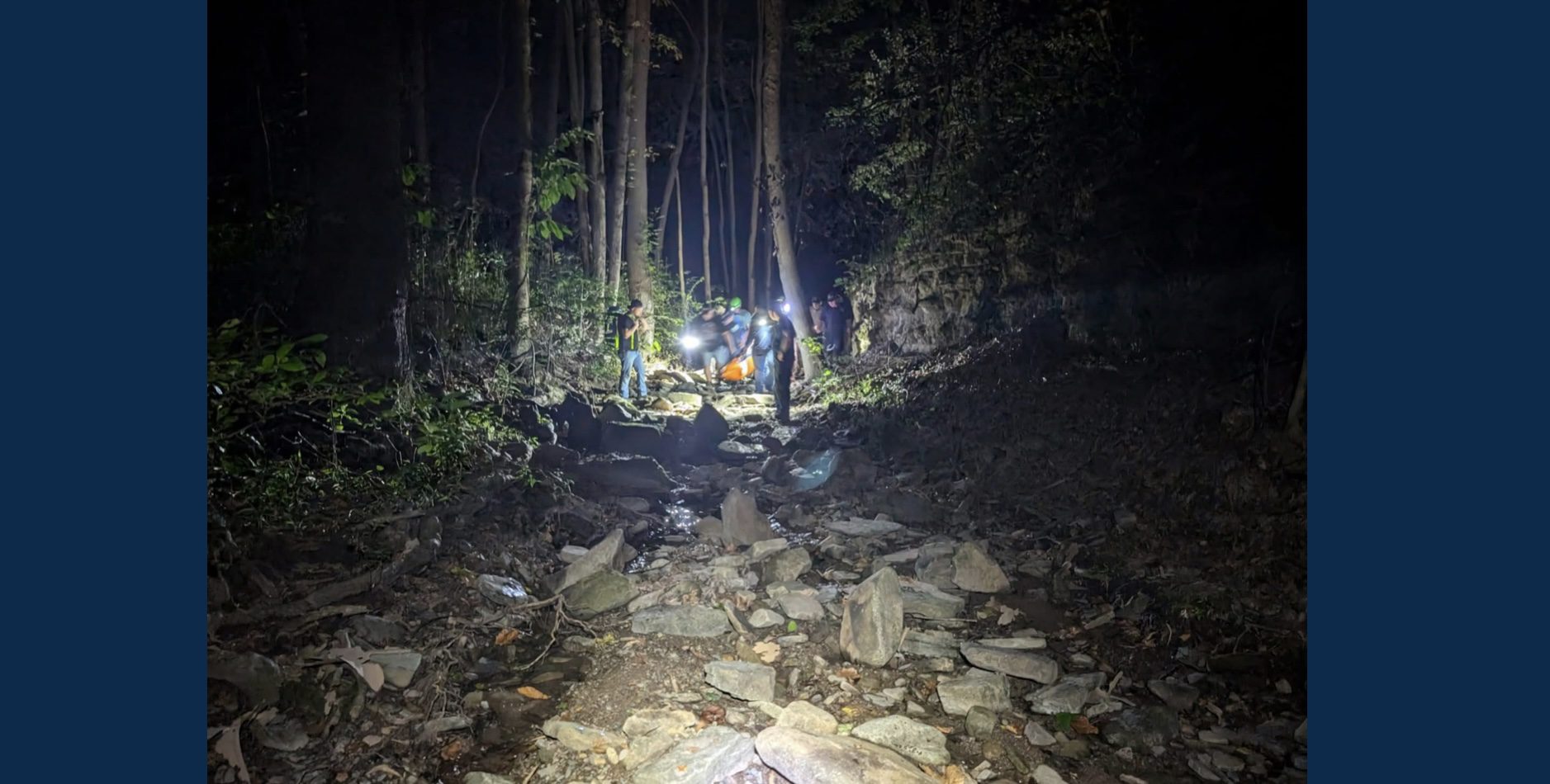 The response required rope rescue, search and rescue operations, and on-site medical care before the patient could be transported.