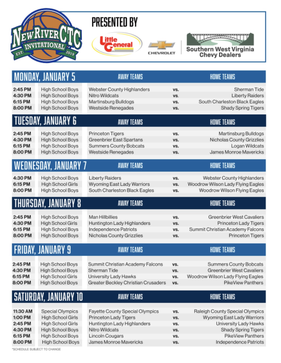 Continuing a beloved tradition, the Invitational will feature a Special Olympics exhibition on Saturday, Jan. 10, highlighting basketball teams from Raleigh and Fayette counties.