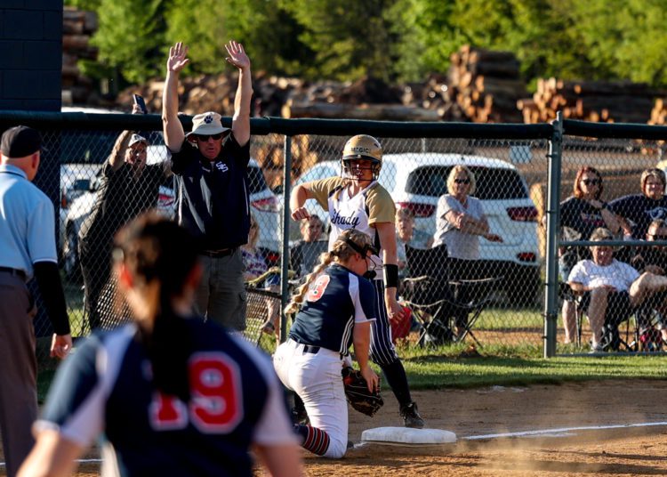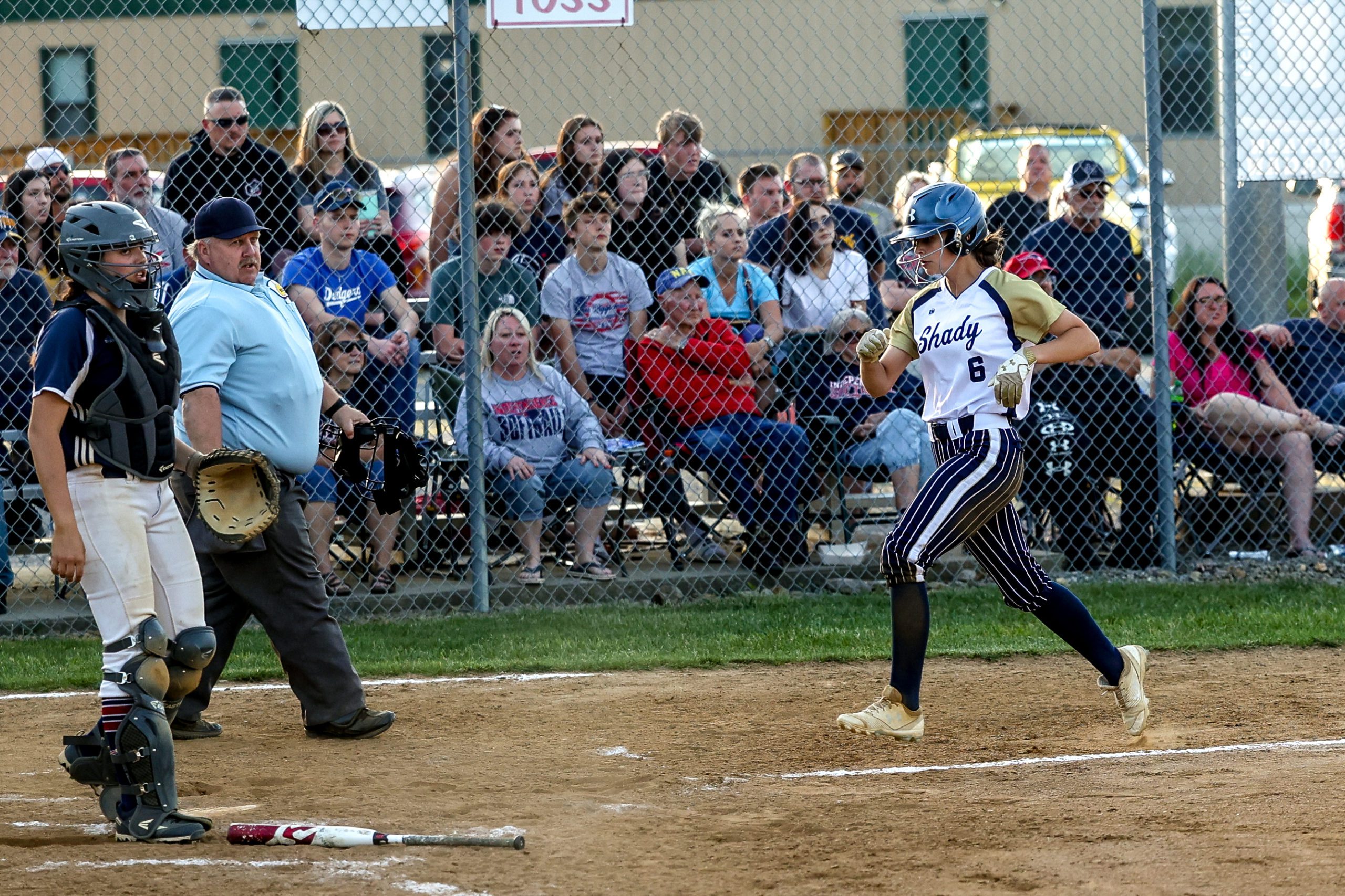 Some of Wood’s opportunities came from Shady head coach Donald Barnett’s decision to change his lineup. He elected to drop leadoff hitter Kaylee Waddell to the cleanup spot, moving Paige Maynard, Olivia Barnett and Wood up a spot. It proved to be one of his most impactful decisions of the tournament with Maynard playing the role of leadoff well. She finished a home run shy of the cycle with her one-out triple in the fifth forcing Adkins to walk Barnett and bring Wood to the plate in a scoreless game.