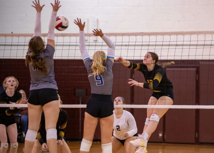 Woodrow broke open a 7-7 tie with a 5-0 spurt which included a pair of kills from Harris. The Spartans moved back within two points aided by kills from Molly Pack and Gracie Gumm, but could get no closer.