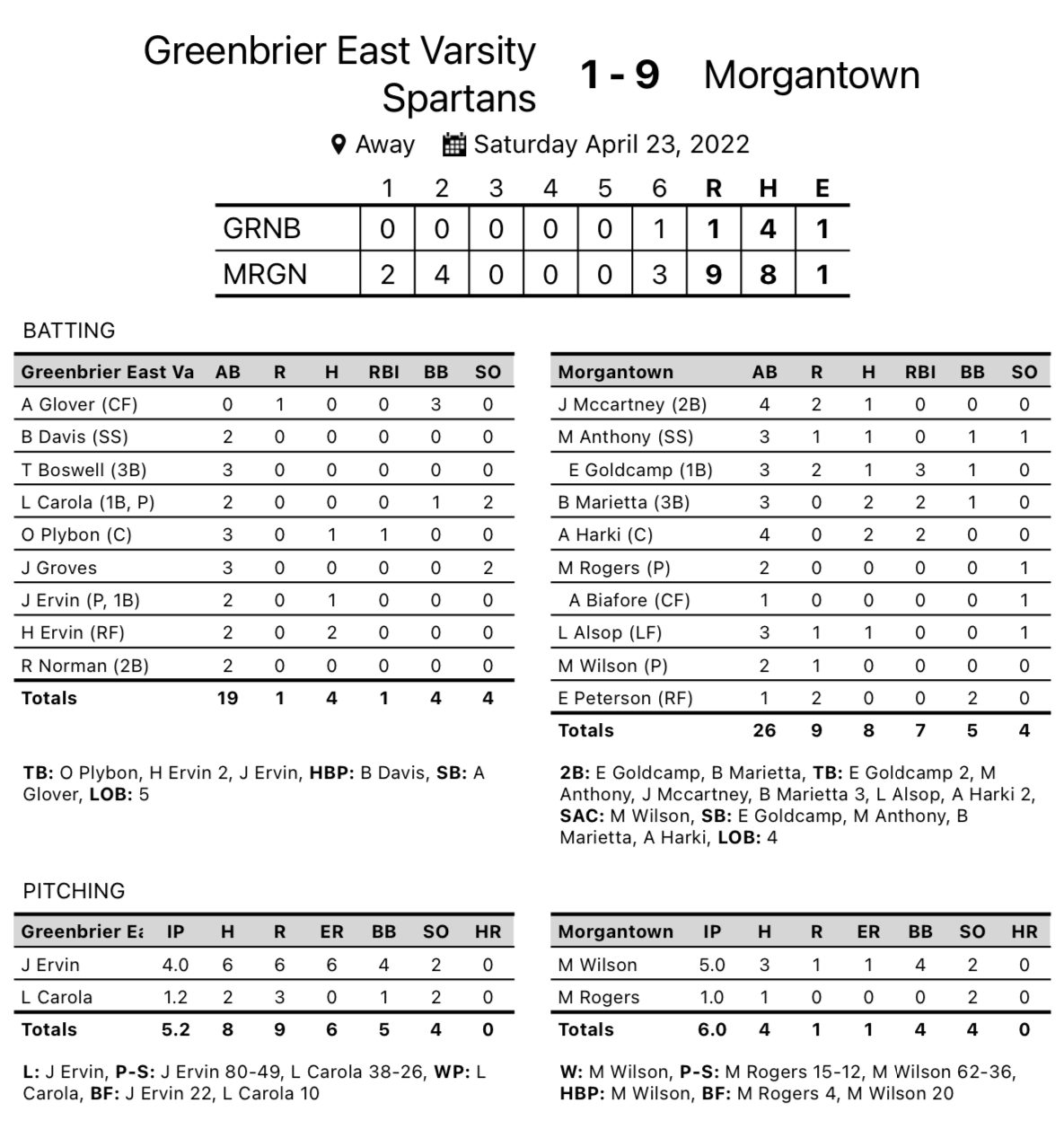 Morgantown 9, Greenbrier East 1
