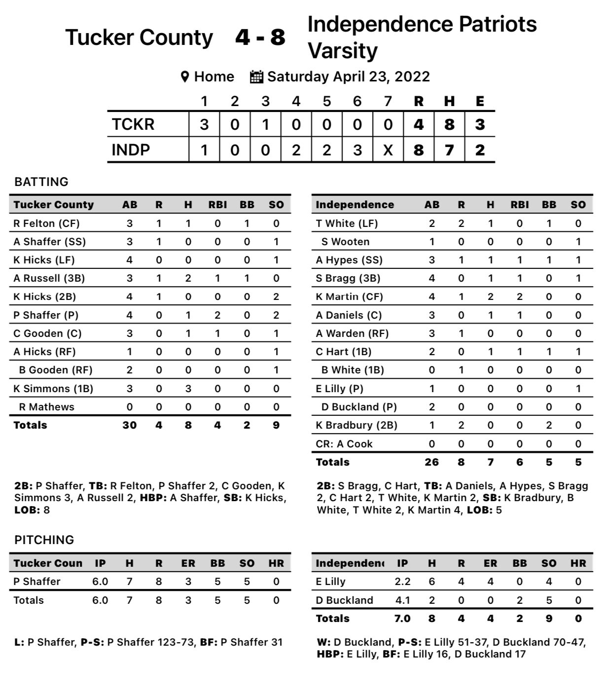 Independence 8, Tucker County 4