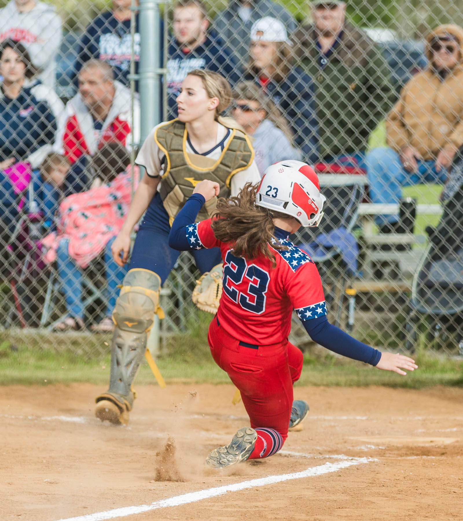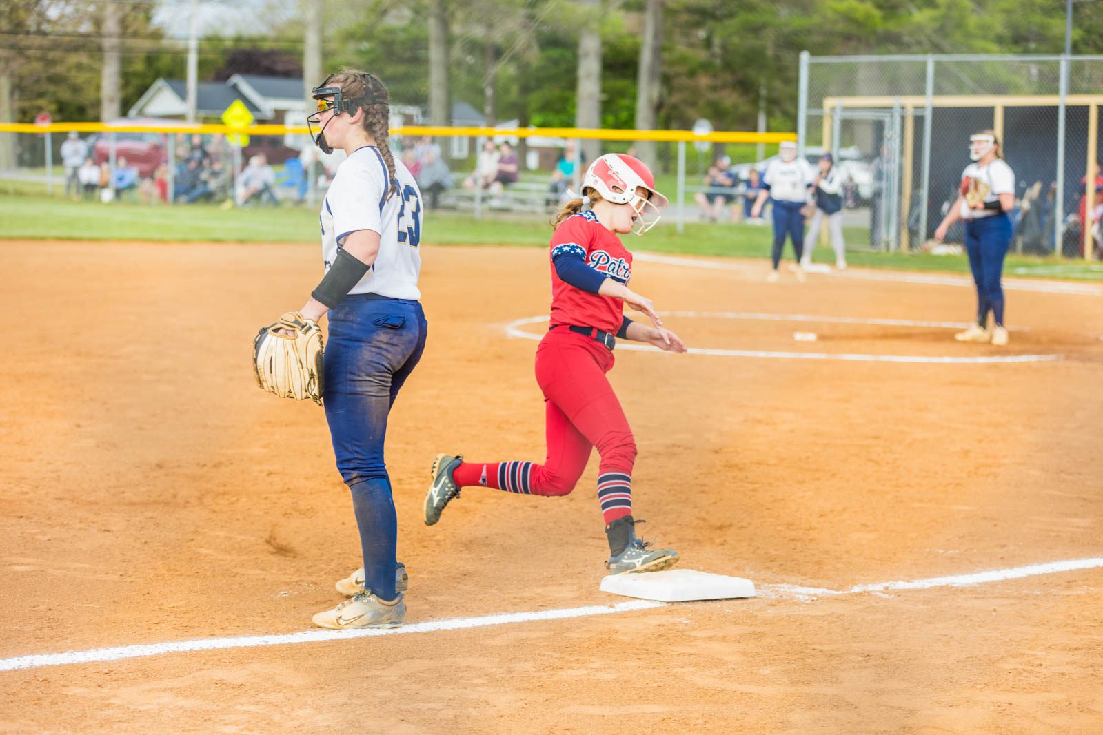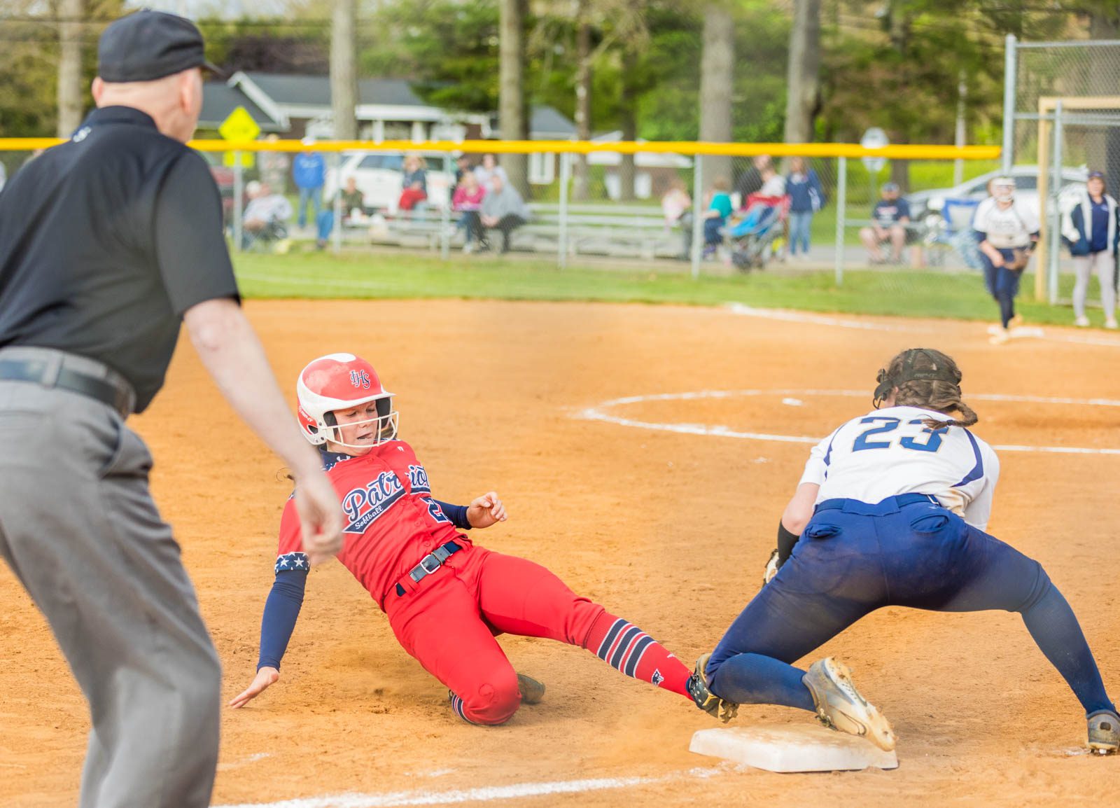 Run-scoring singles from Alli Hypes and Emma Lilly were part of a seven-run outburst that gave the Patriots a four-run lead.