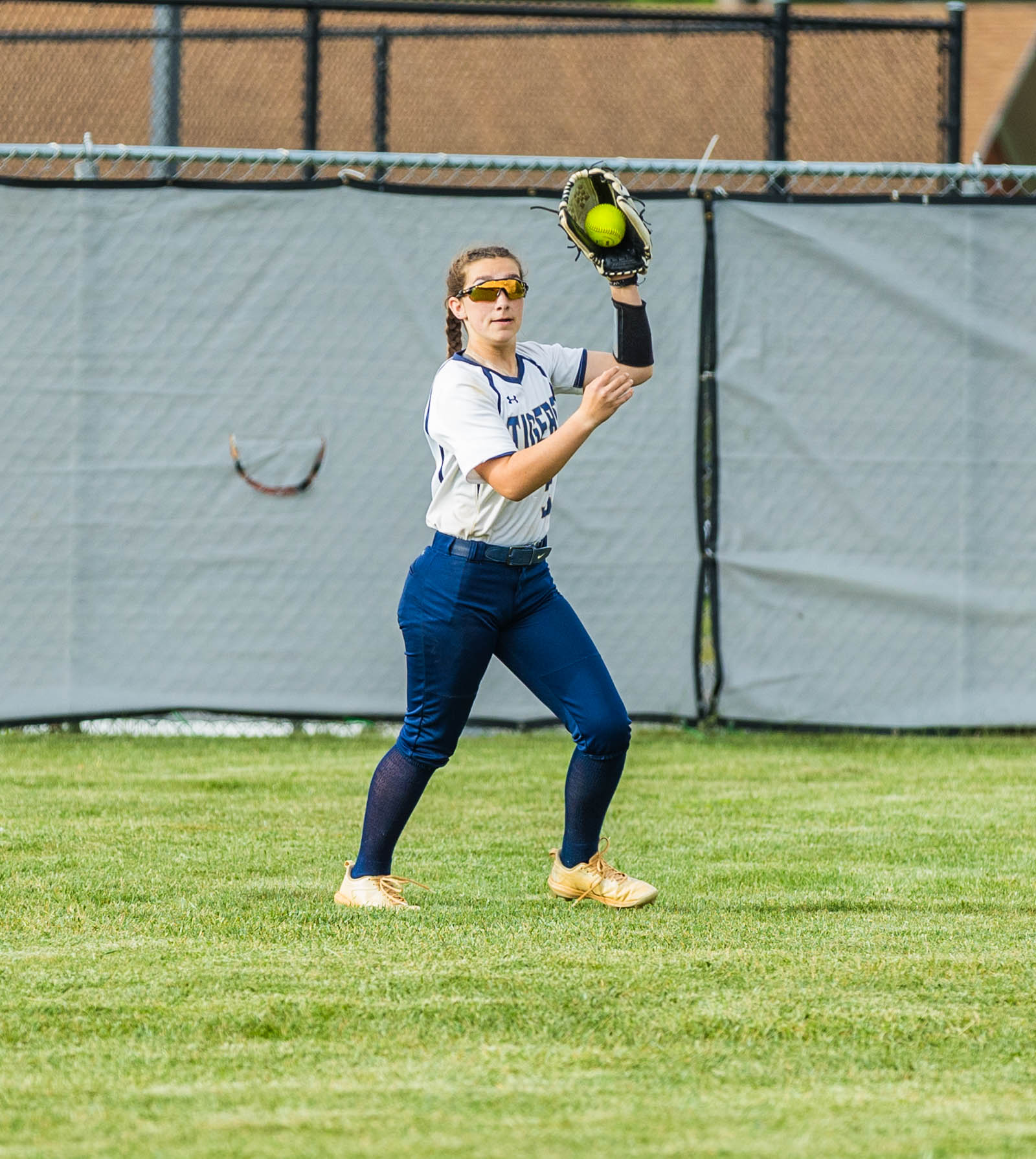 Back-to-back singles by the hard-hitting duo with one out set the table. Two errors by the Patriots kept the inning rolling prior to a sharp single from Brooklynn Blankenship which scored two runs giving the Tigers a 10-7 lead.