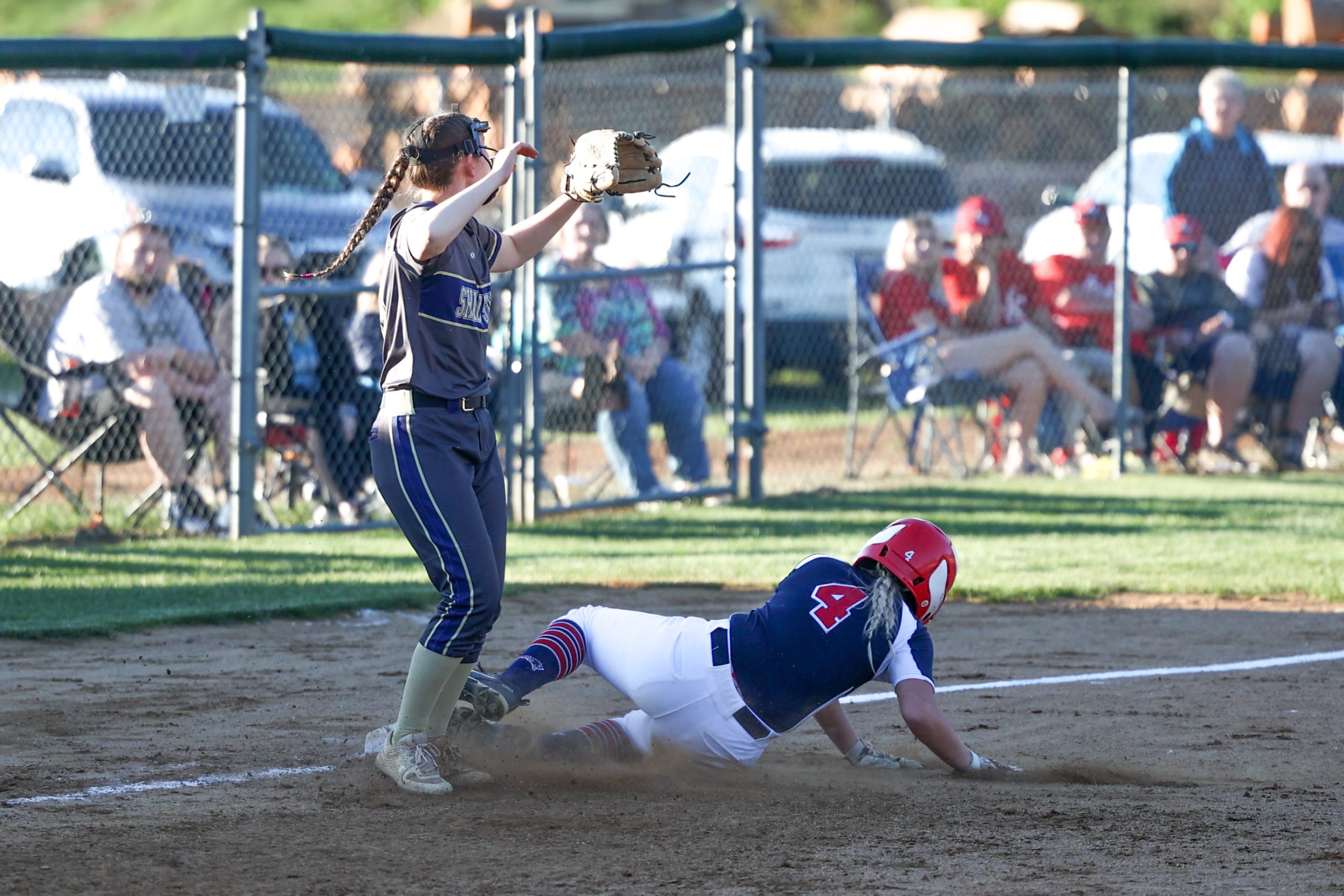 “The ump called it tight today and that forced both our hands,” Adkins said. “When they get the hit I’m telling you I’ll walk (Barnett) five more times. The odds are Olivia Barnett is going to get you sooner or later and she’s not going to get me – not today. She came up there with two on and I thought this is a tie ballgame – I know what the plan should be but if we miss a pitch she’s hitting it out. She’s hungry so I said we’ll take our chances with the other two and the girl got me.”
