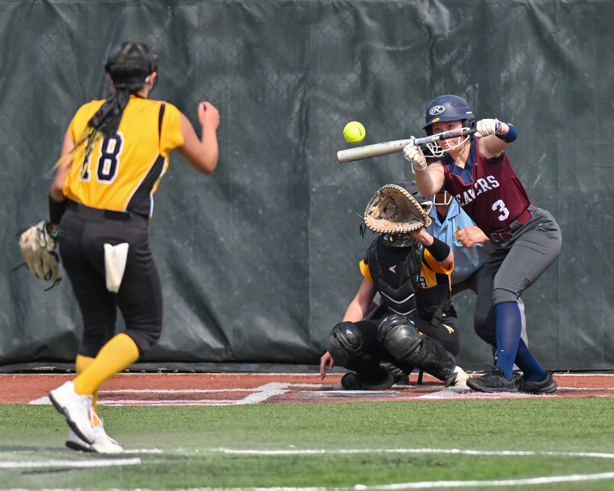 Pitchers Cali Masters and Kyleigh Rupert split duties in the winning, allowing just one base runner. The Blue Devils were just as sharp on offense, scoring 14 runs in the first inning to put the game away. Their cause was aided by eight Trail errors, chasing starter Madison Rader after facing 14 batters and securing one out.