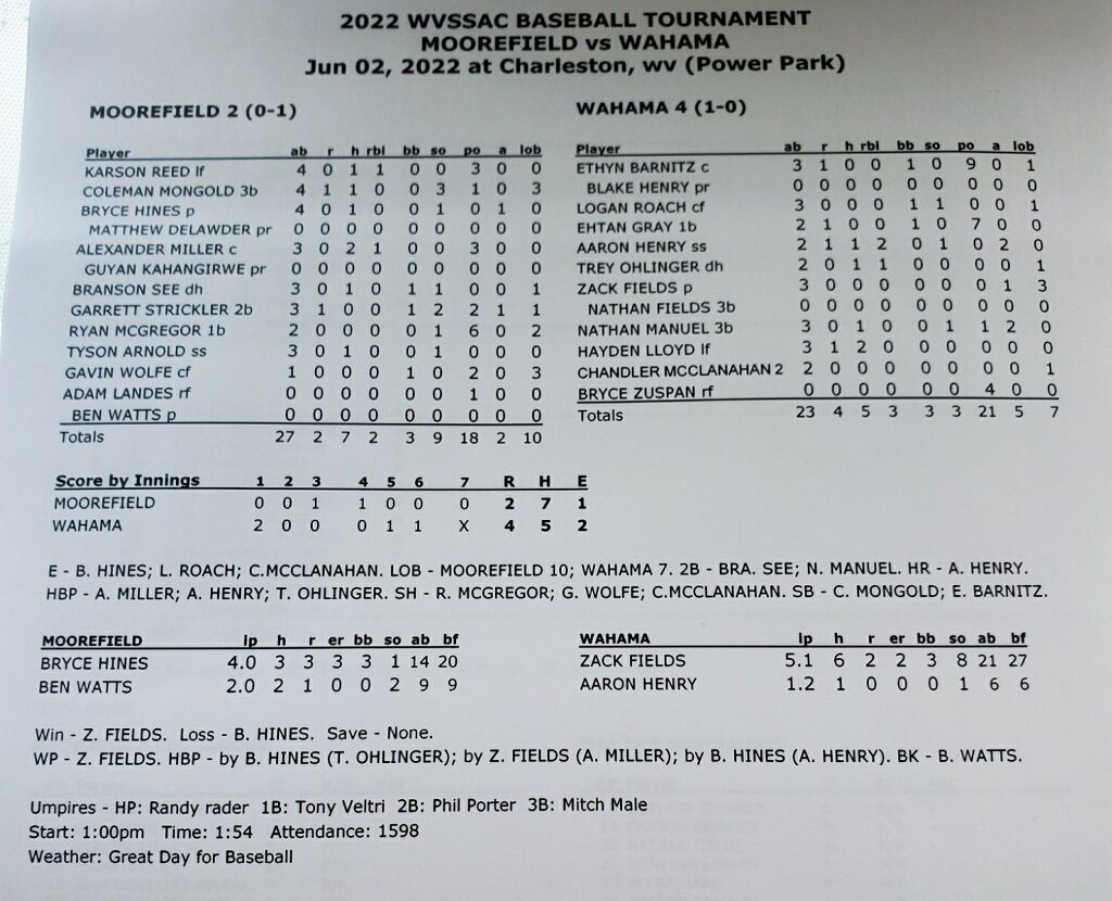 While his team was struggling to score, Wahama pitcher Zack Fields was keeping his team in the game battling through some tough innings.