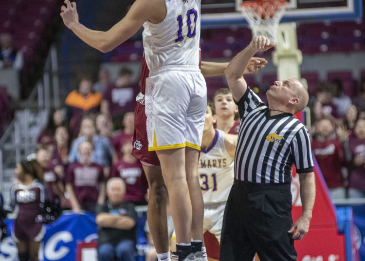 “They created a lot of issues in case you didn’t notice out there,” St. Marys head coach Mark Barnhart said. “Breaking their pressure, it’s not easy. I’m proud of these gentlemen sitting beside because I’m not sure that in our regular season we’ve seen pressure like that all year. We watched them play Wyoming East who I thought had a very nice team and they gave them fits with it.”