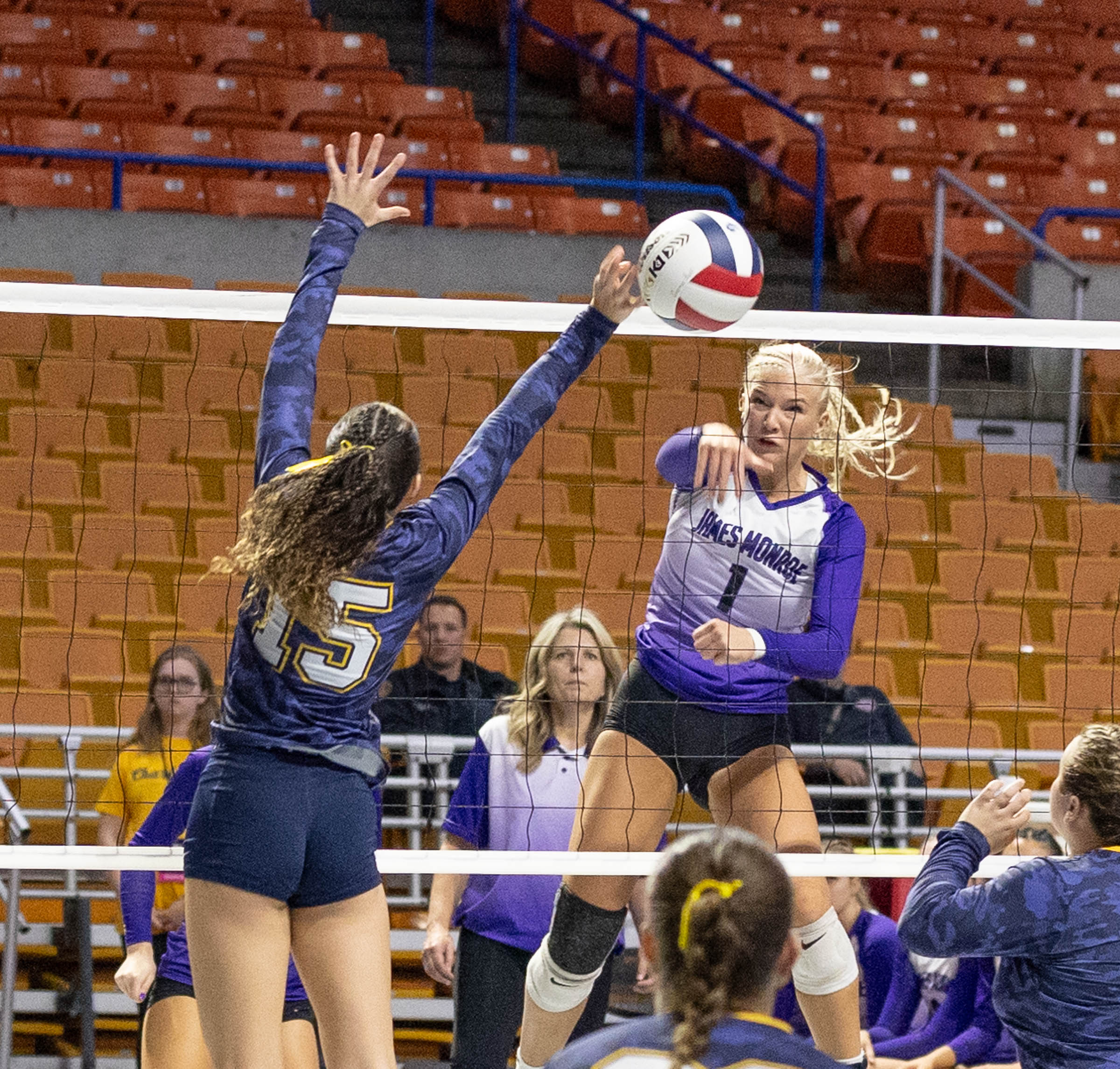 “It changed the flow and was not quite what we expected because we had been working on first ball kill serve receive. We just got a little flustered there,” James Monroe head coach Julie Bradley said.