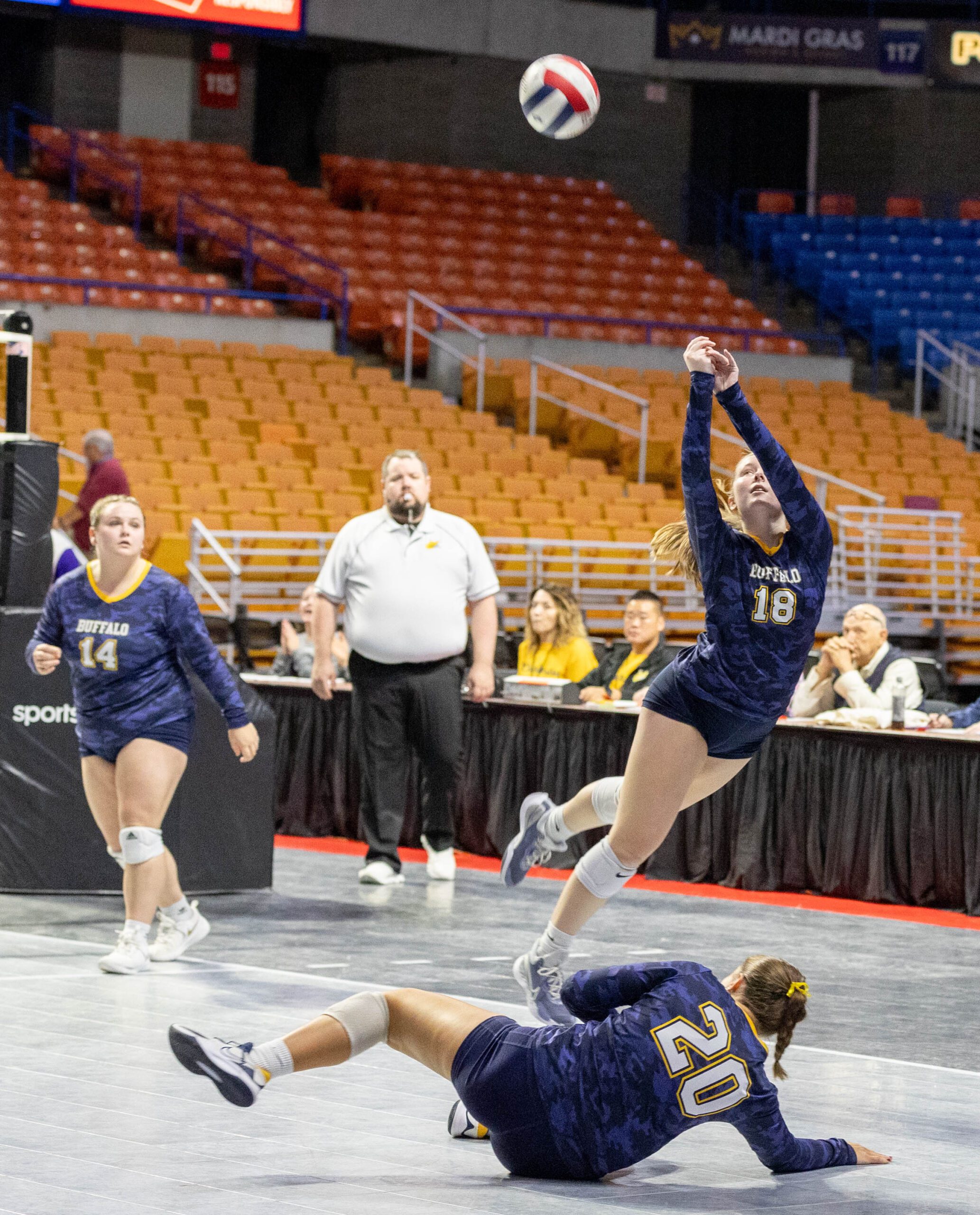 Trailing 14-12, Buffalo tallied 13 straight points to cruise past James Monroe 25-14. A kill and six aces from Natalie Baisden set the wheels in motion, which were accelerated by four kills from Harris.