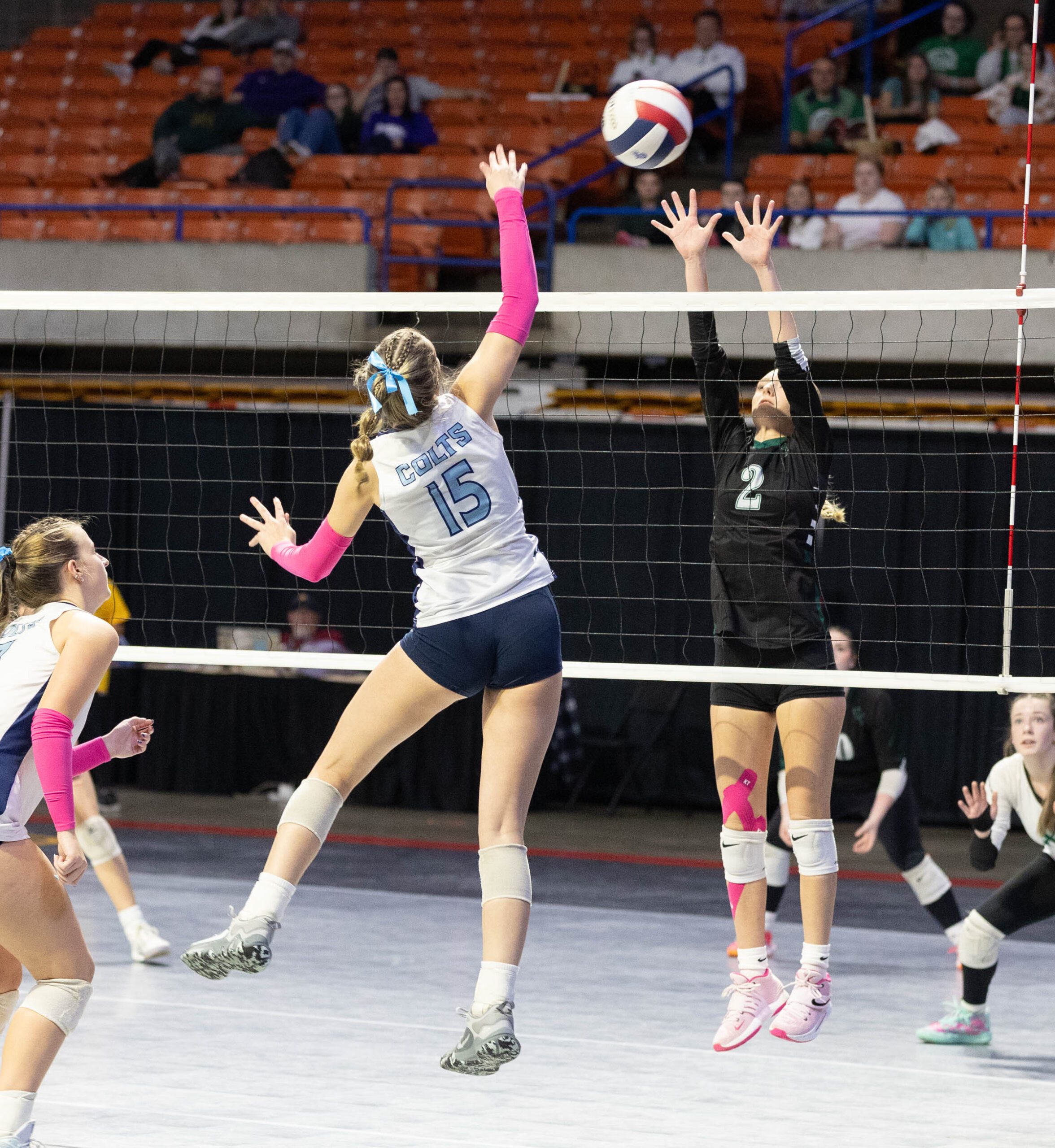 After scratching back within one point at 15-14, the Colts ran off five straight behind three kills from Izzy Knotts and a pair of aces from Finley Carpenter.