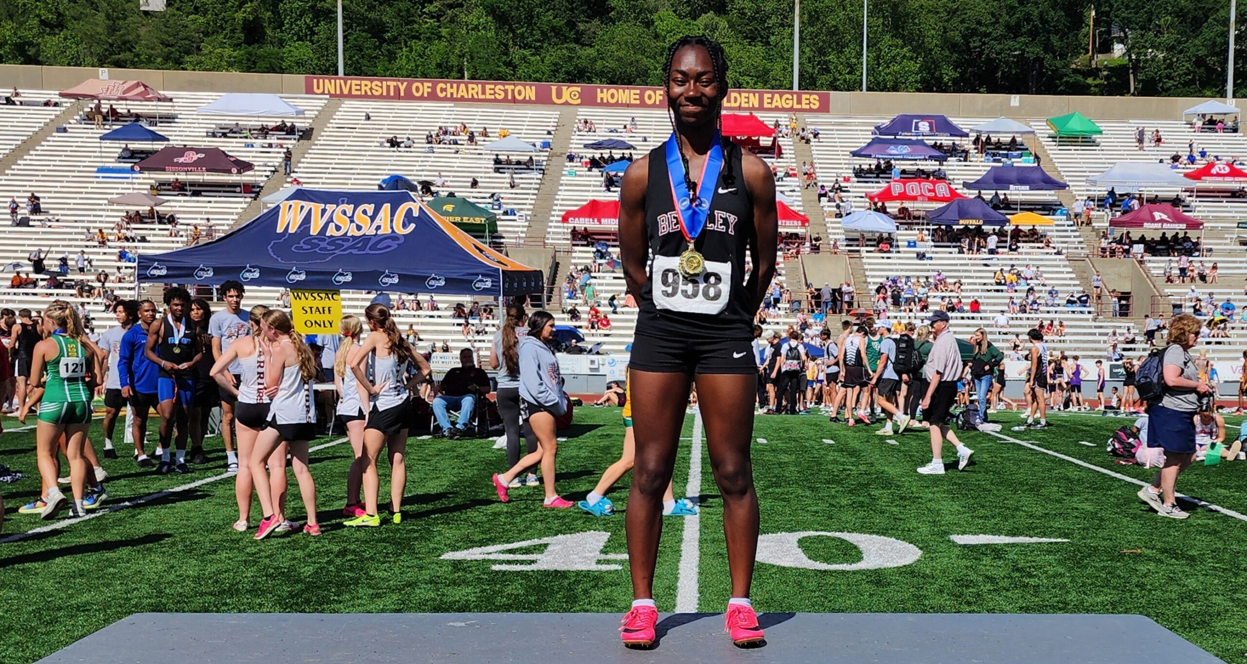 As part of the 4×200 relay team, along with Kyndall Ince, Salia Harris and Nevaiah Simmons, the newly crowned state champion helped lead the Flying Eagles to a runner-up finish in that event as well. It took Jefferson setting a new state record to top the girls from Beckley.
