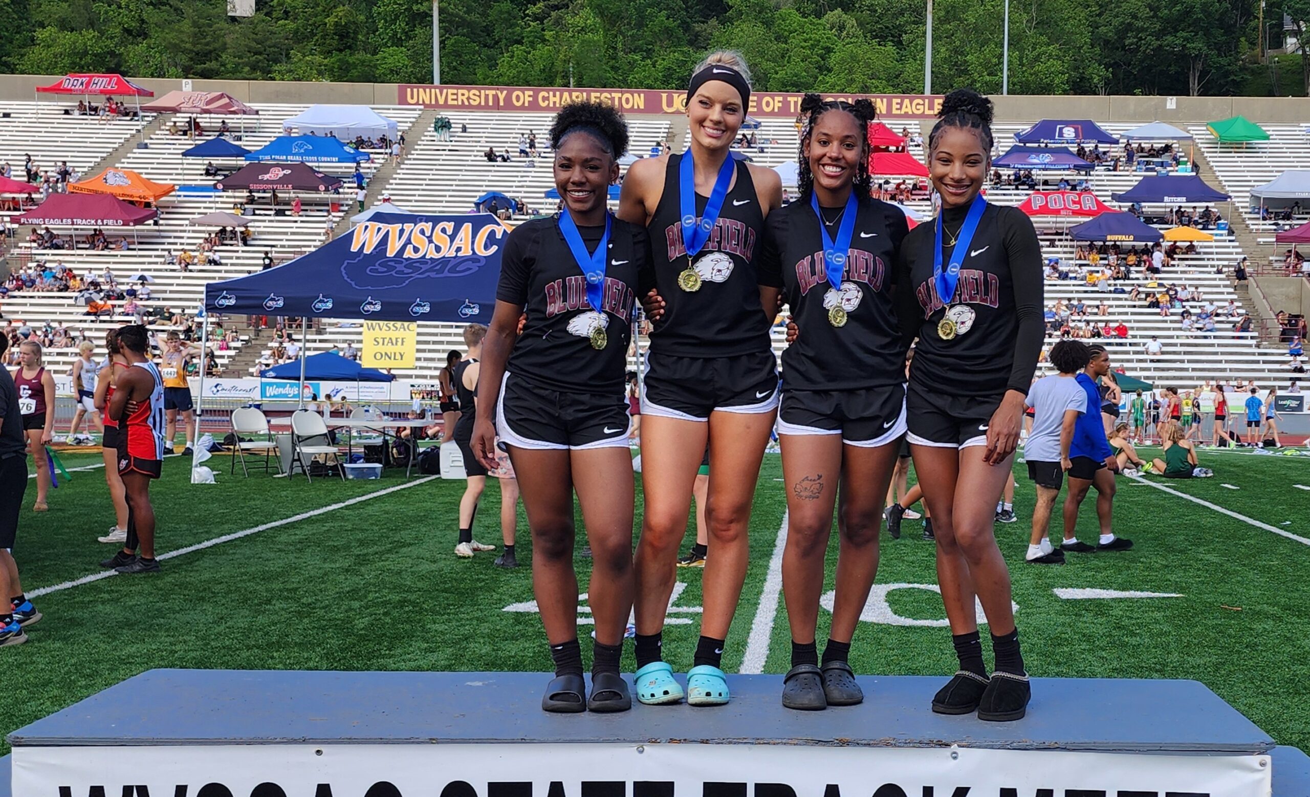 Charleston – Saturday afternoon the W.Va. State High School Track meet did not quite go as planned for the Bluefield girls relay team.