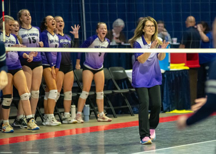 “This feels great after that regional loss. That was a fun game even though it didn’t fall our way. I told them we might go five (sets today), but we weren’t going 21-19 (in the fifth set). Lets bare down and get this,” James Monroe head coach Julie Bradley said. “Greenbrier West is our rival, but they are a heck of a team. They are well coached and have good skilled players. It was just a hard fought match.”