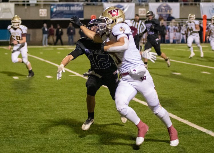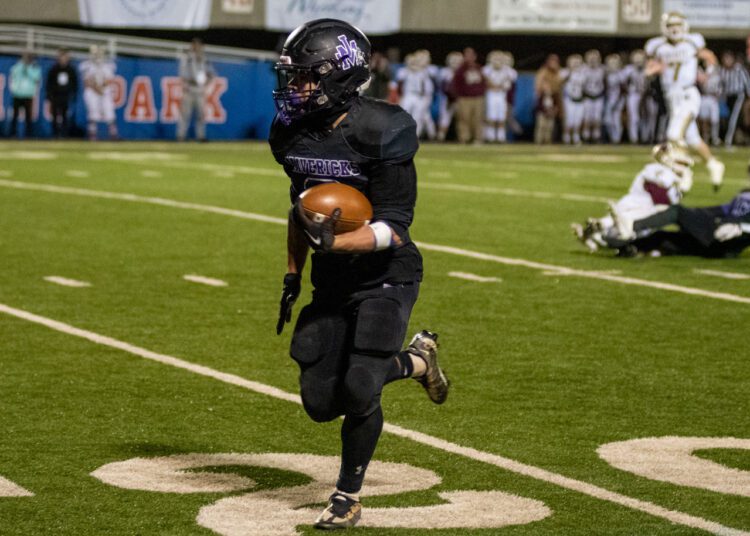 Afterwards it was Molessa again as he scored on a 55-yard run to help push the lead to 22-8. Stumbling, the Mavericks found life and dug out of their own hole. Facing second-and-27 at their own 25, the coaching staff called Eli Allen’s number on a middle screen and he delivered with a 39-yard catch and run, following later with an 18-yard catch that set the Mavericks up at the Yellowjacket 1.