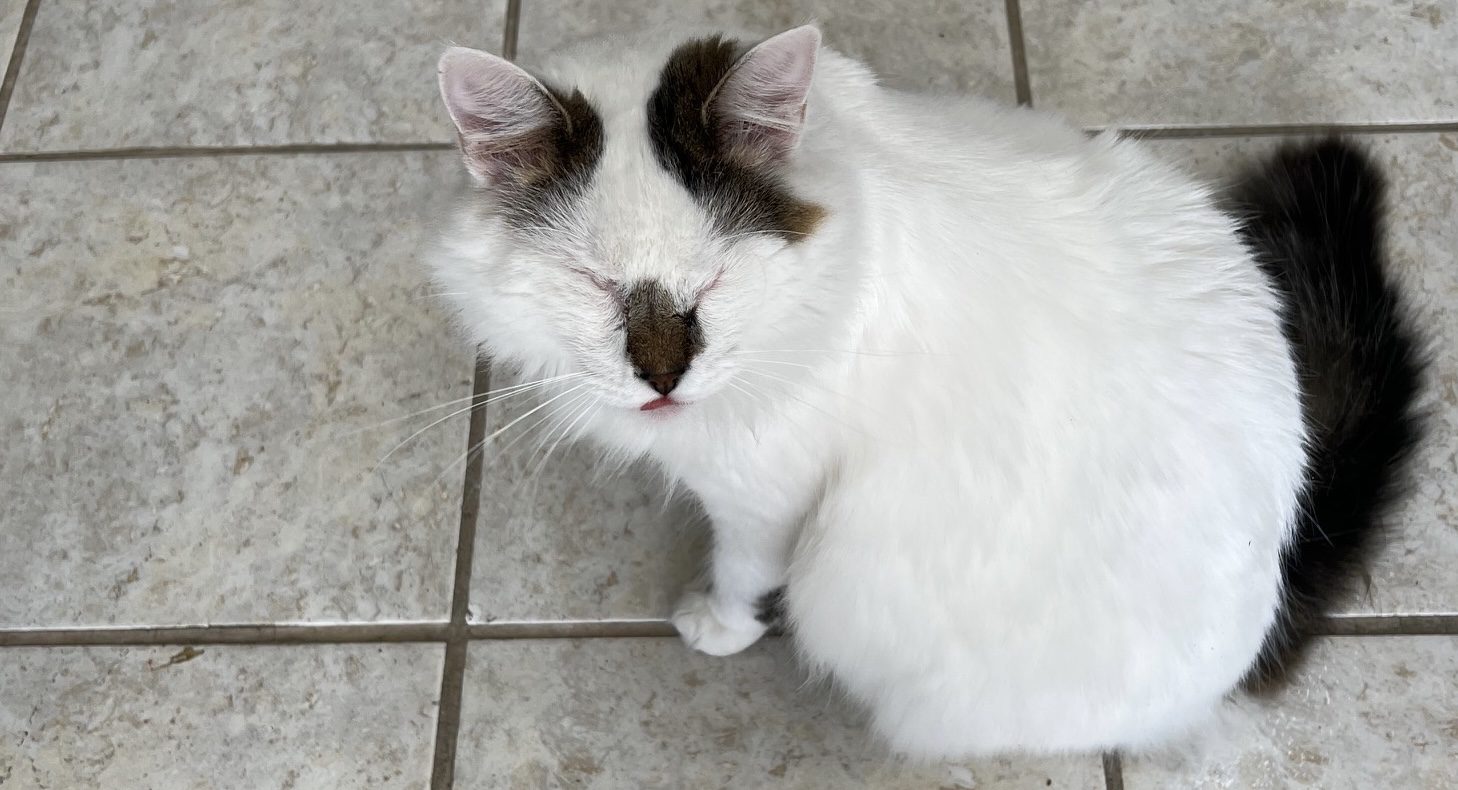 First discovered last year as a kitten, he had been abandoned by his feral mother due to an infection he suffered in both eyes which ultimately resulted in a complete loss of vision.