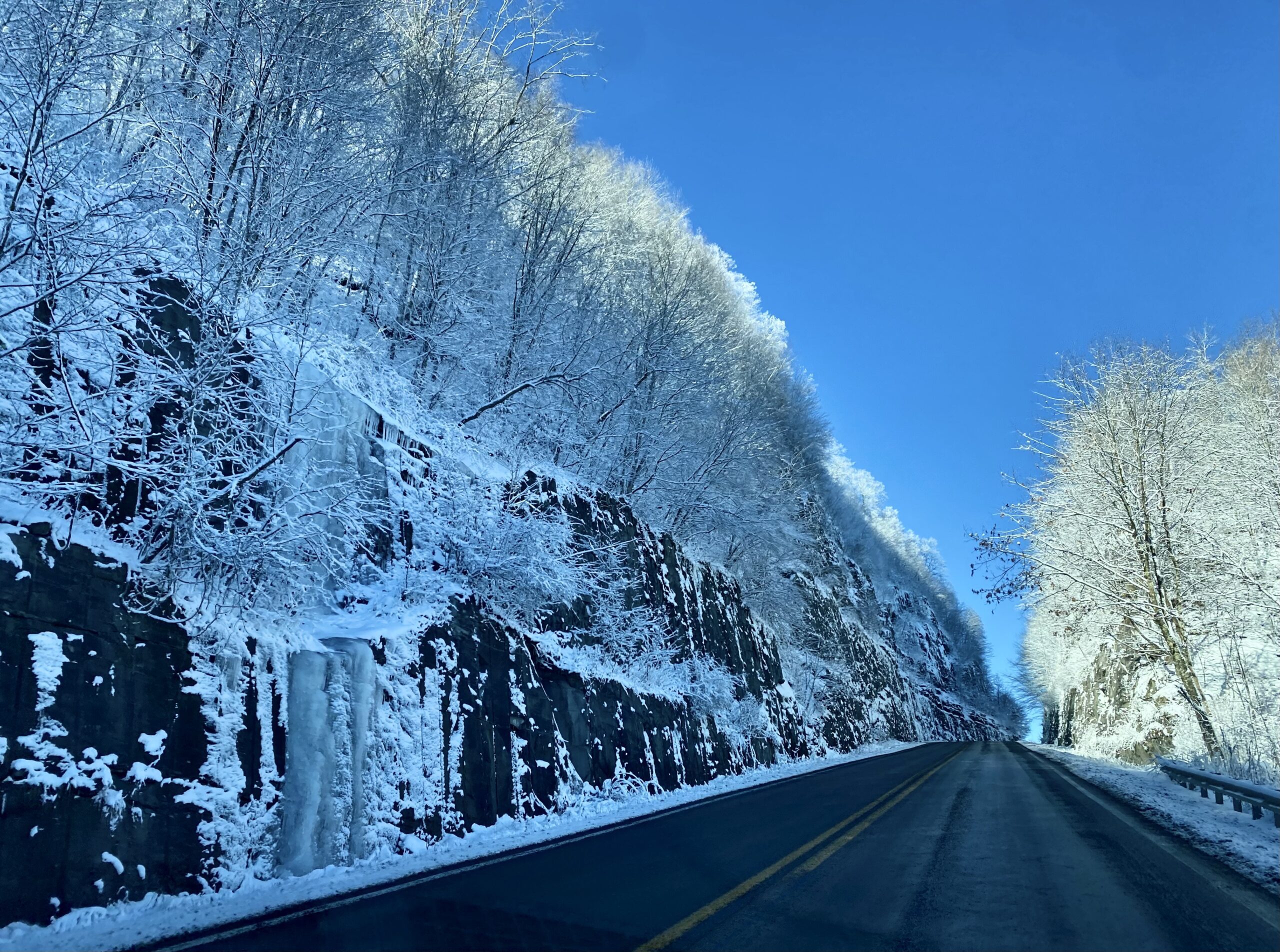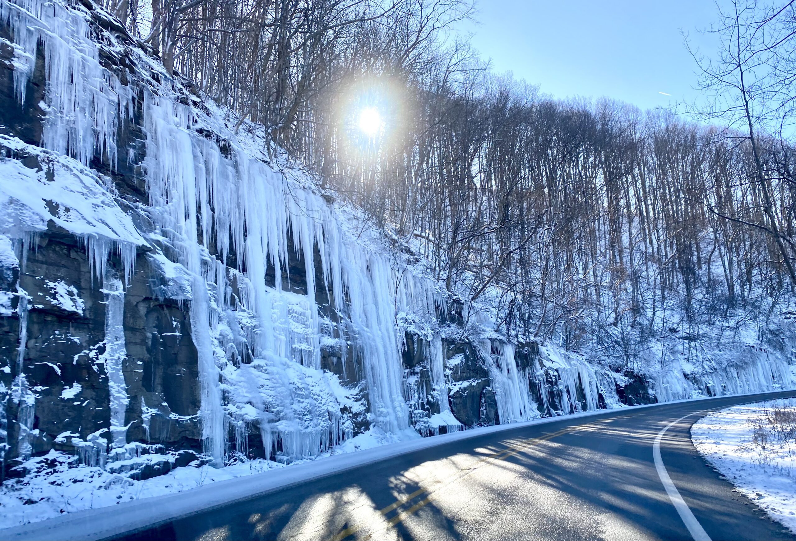 But in the winter conditions also lies a hidden benefit for those with the presence of mind to be made aware of such an advantage. Upon being afflicted with ice and snow in freezing conditions, US Route 99 in Bolt, WV is a downright gorgeous naturally occurring wonder of nature.