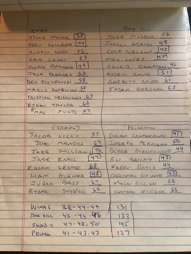 Princeton 127, Woodrow Wilson 131, Oak Hill 133, Shady (B) 145