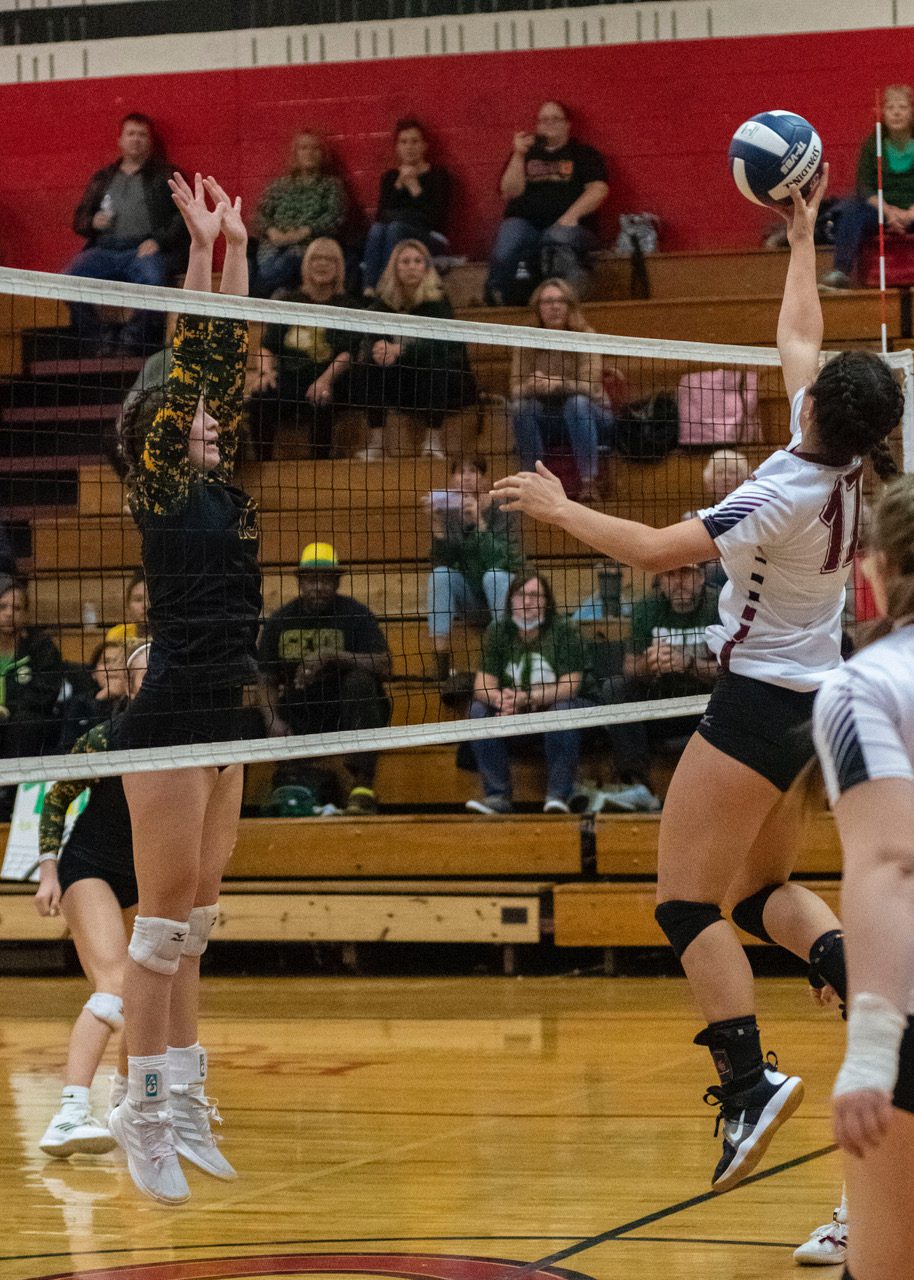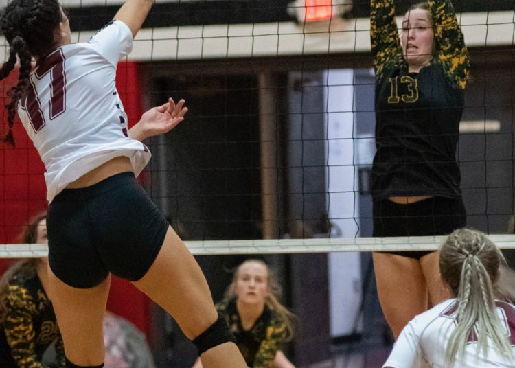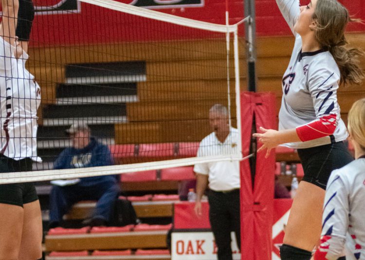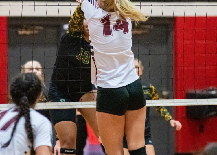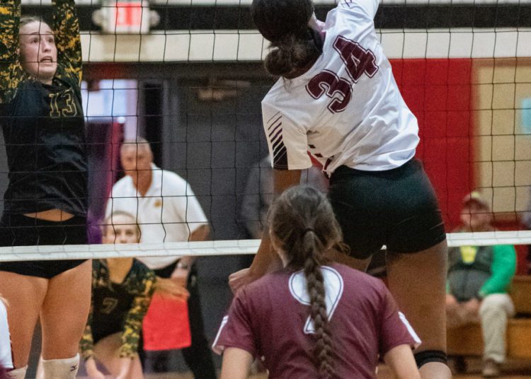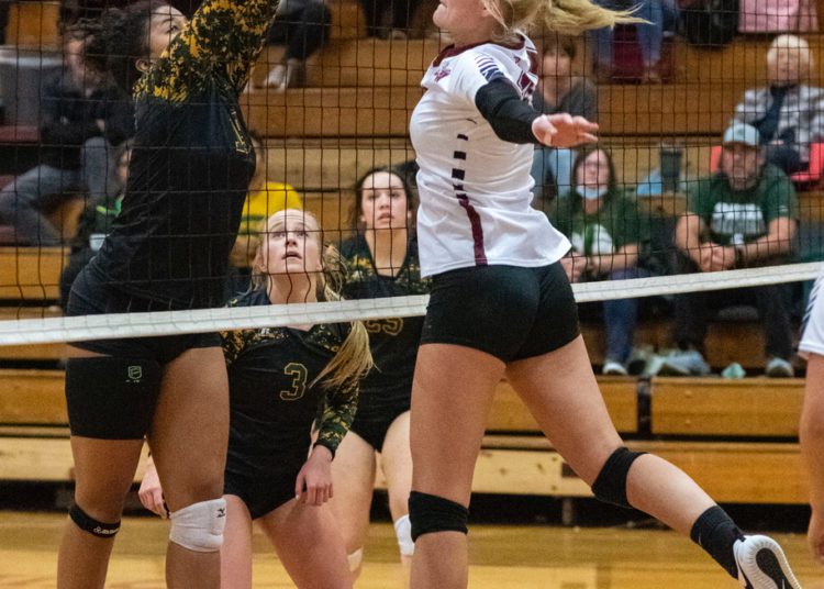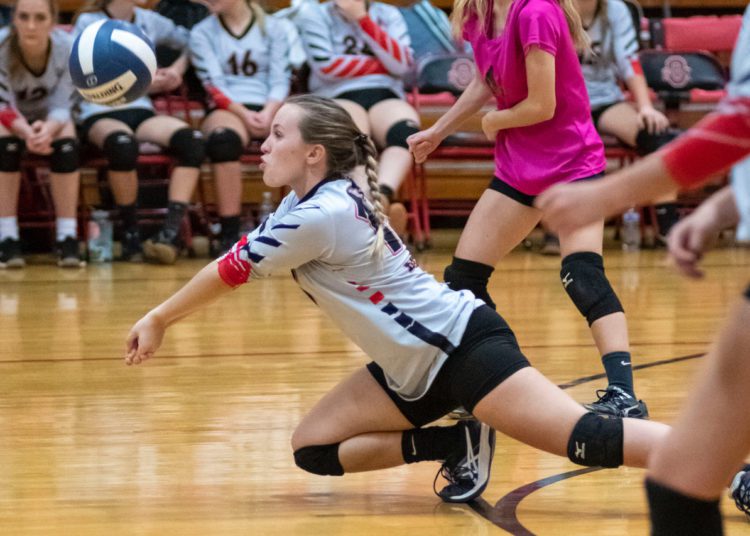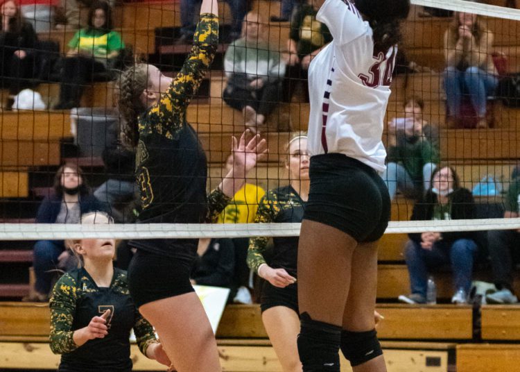 A dig from Salon saved a crucial point before Abby Dillon set her on the back row. Salon’s blast killed the Spartans rally in its tracks.