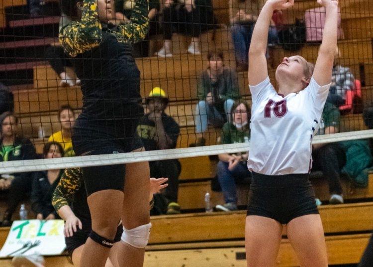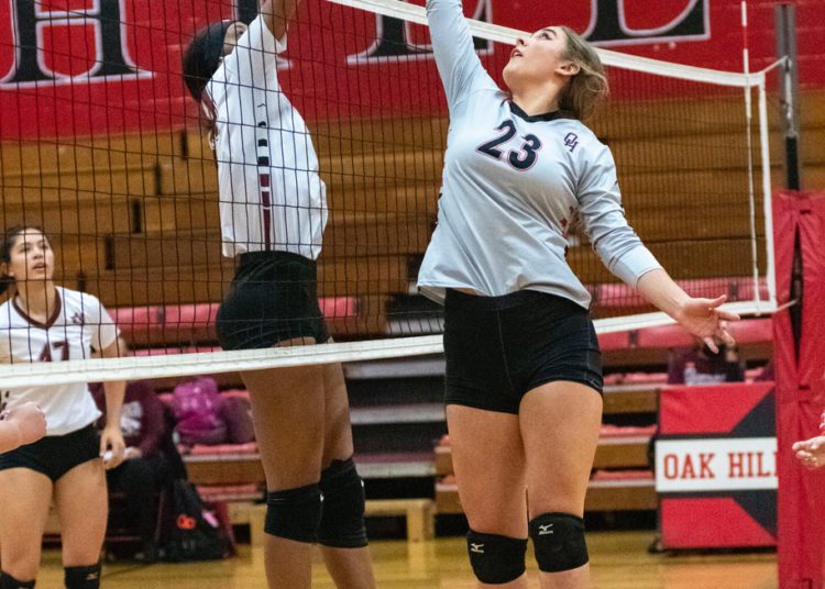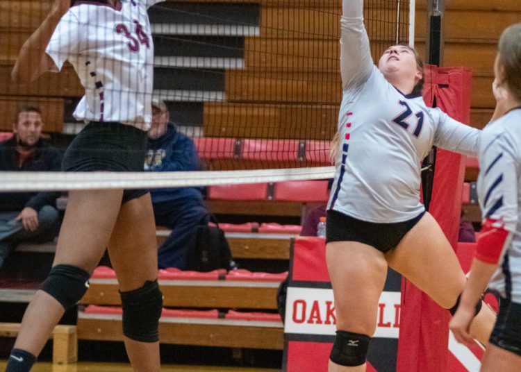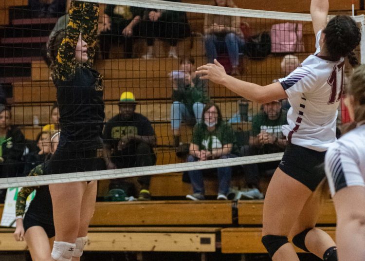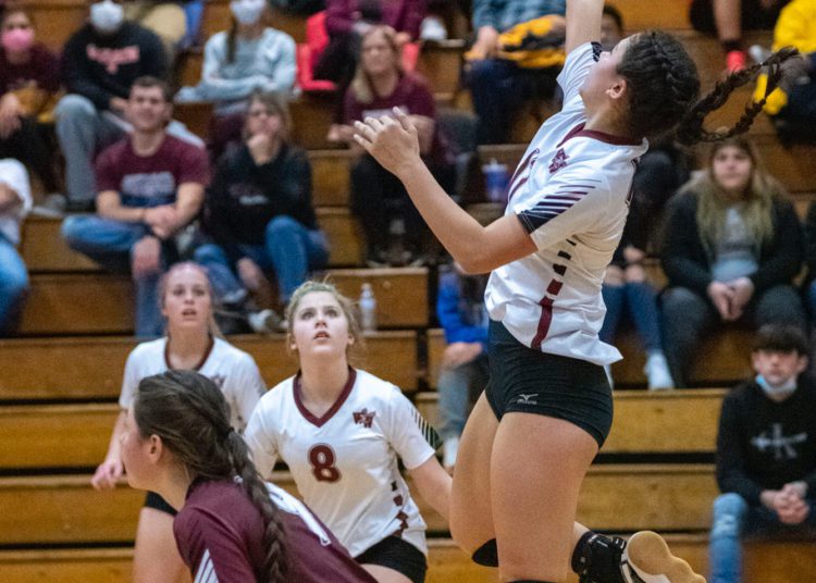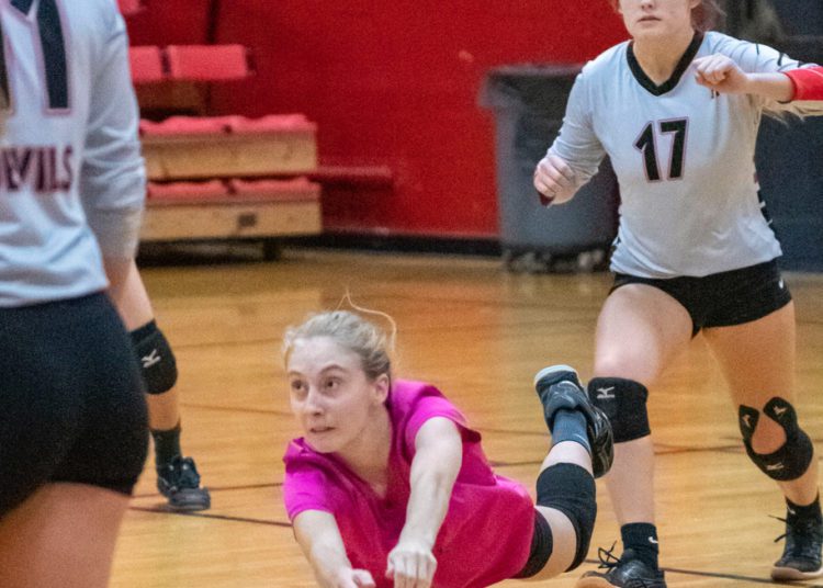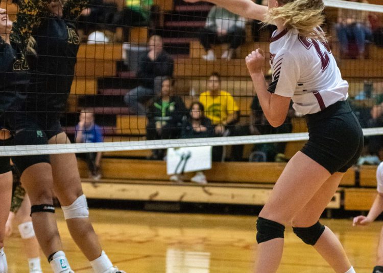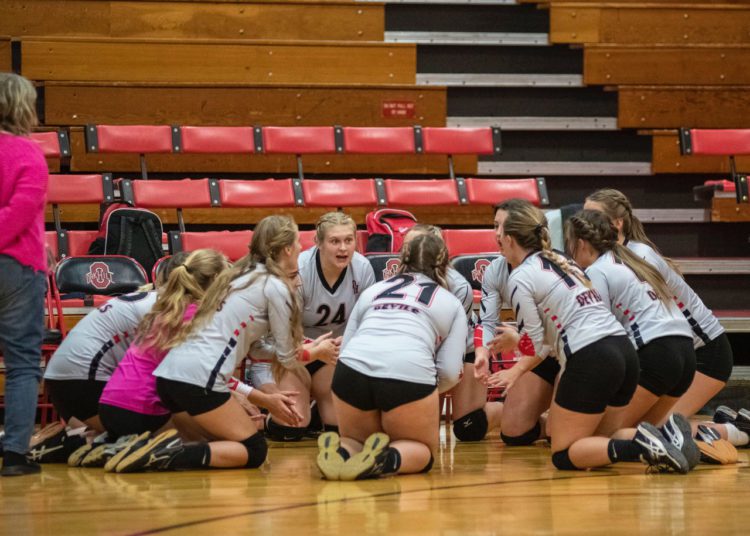 A dig from Salon saved a crucial point before Abby Dillon set her on the back row. Salon’s blast killed the Spartans rally in its tracks.