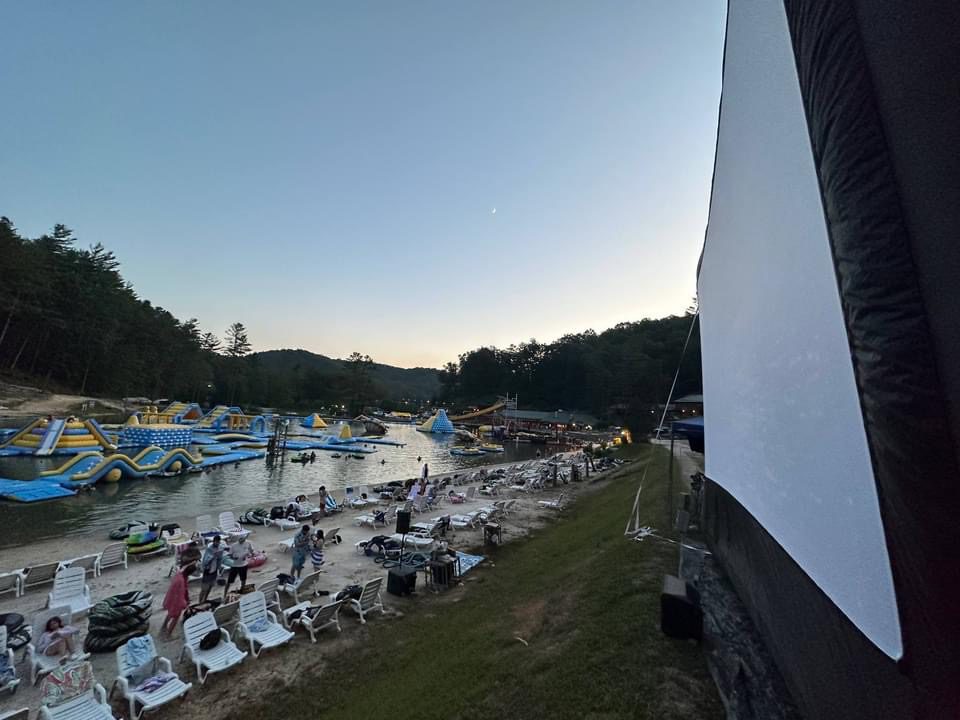 Guests can watch the film from the comfort of an inner tube, lounge on the beach, or relax on lake toys.