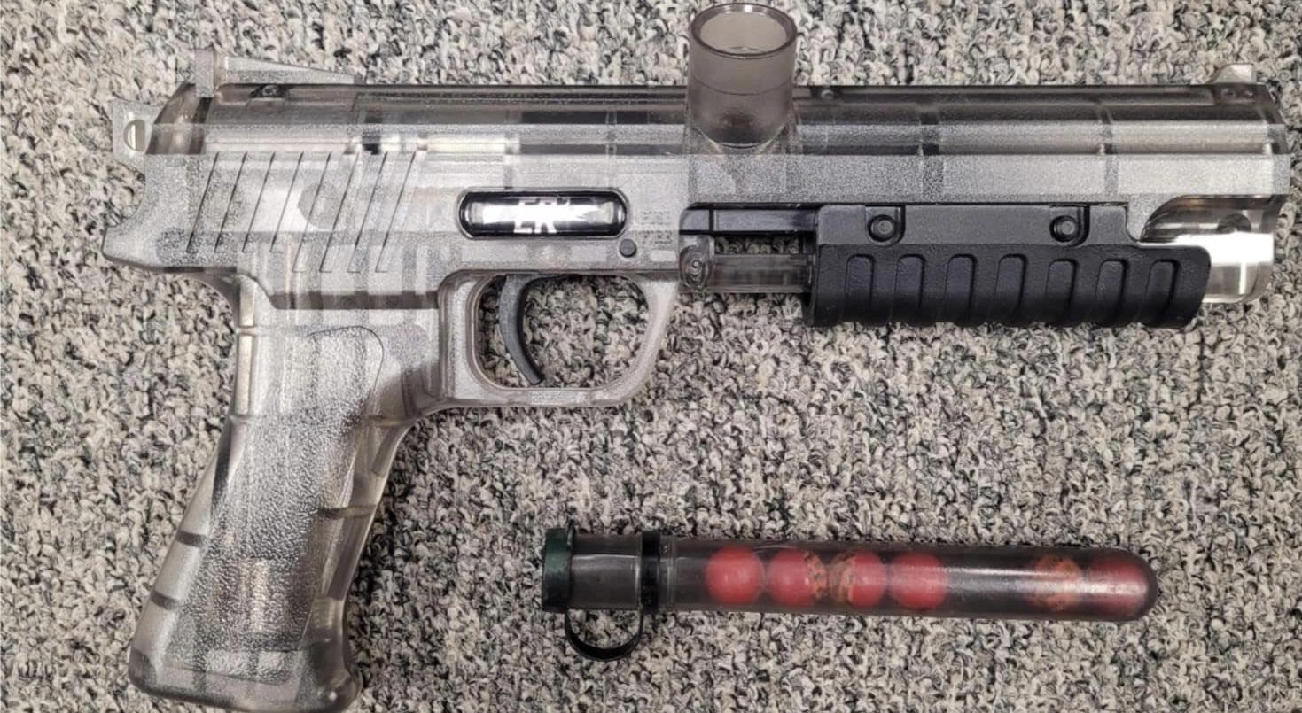 Bender was detained and the paintball gun was recovered. Bender had visible orange paint on her hands and admitted to firing the paintball gun at the victim, stating that she was attempting to scare him away.